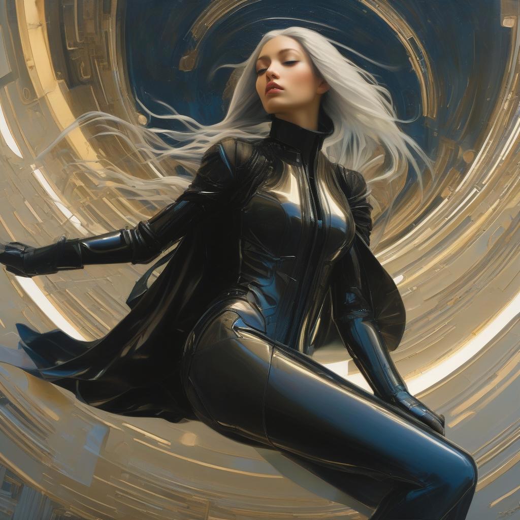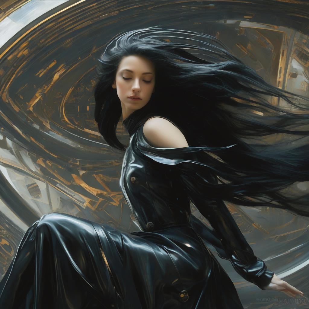 Mech, Spontaneous fluid Active pose , by Salomon van Abbé , beautiful woman, portrait, detailed / by Salomon van Abbé Synthwave, black hair