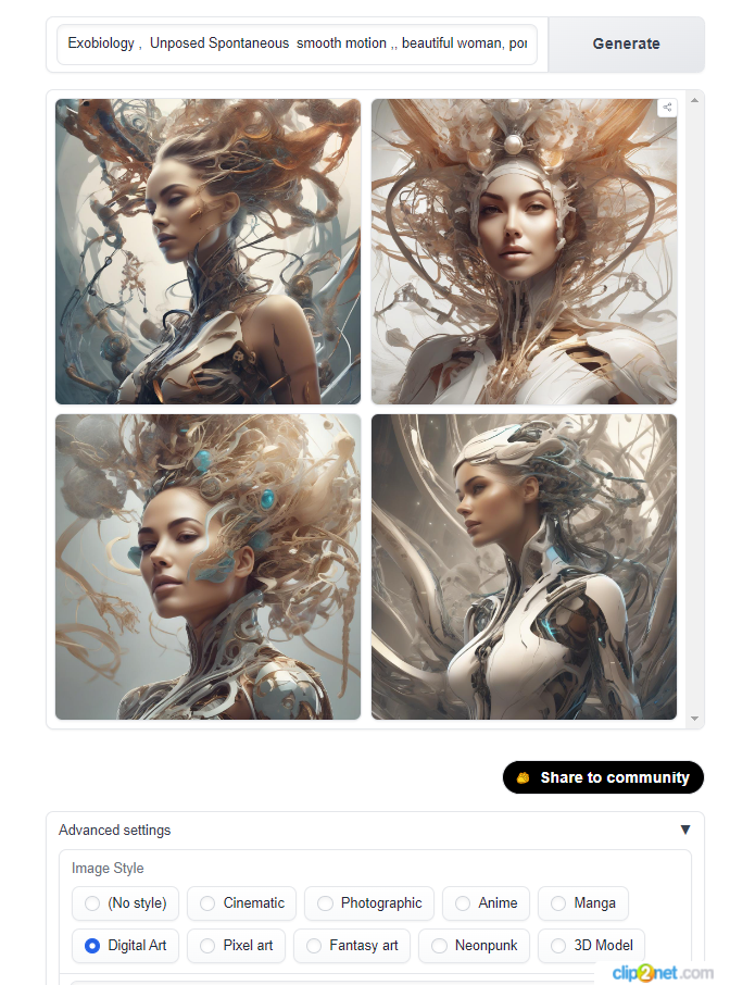 "Экзобиология" тут у меня сработала только с кнопкой Digital Art. Интересный стиль!