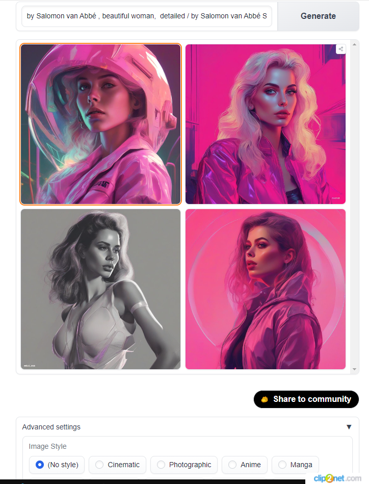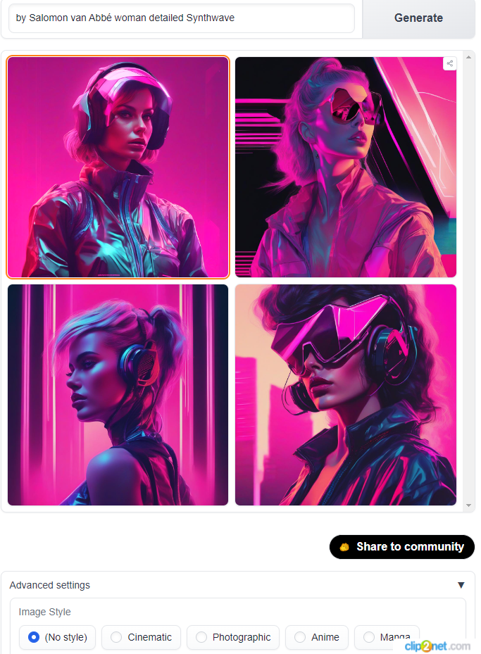 Теперь начинаем скрещивать с другим стилем. Для примера беру яркий стиль - synthwave, и хочется , чтобы он именно объединился со стилем художника, а не забил его напрочь.
