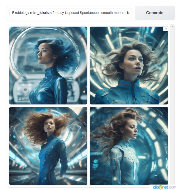 Exobiology retro_futurism fantasy Unposed Spontaneous smooth motion , bokeh, elegant, zero gravity, floating hair,  beautiful female, spacestation ,  portrait, detailed,   by Salomon van Abbé,  blue