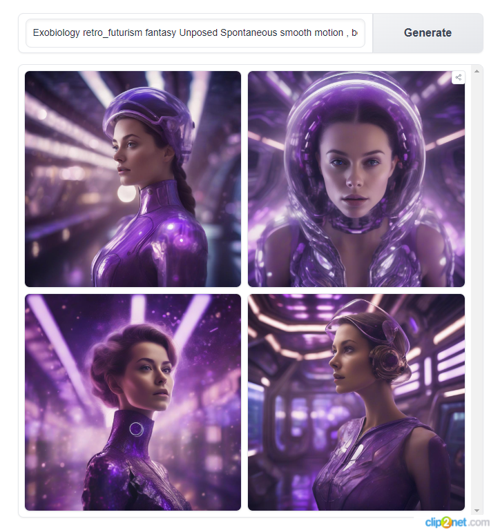 Exobiology retro_futurism fantasy Unposed Spontaneous smooth motion , bokeh, elegant, beautiful female, spacestation ,  portrait, detailed,   by Salomon van Abbé,  violet