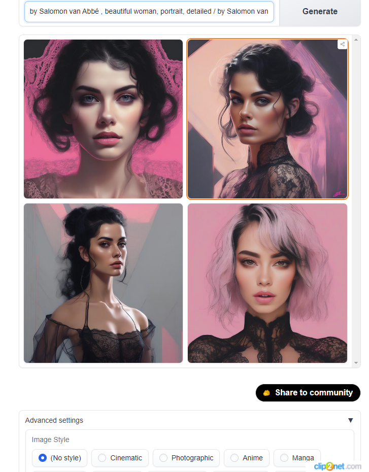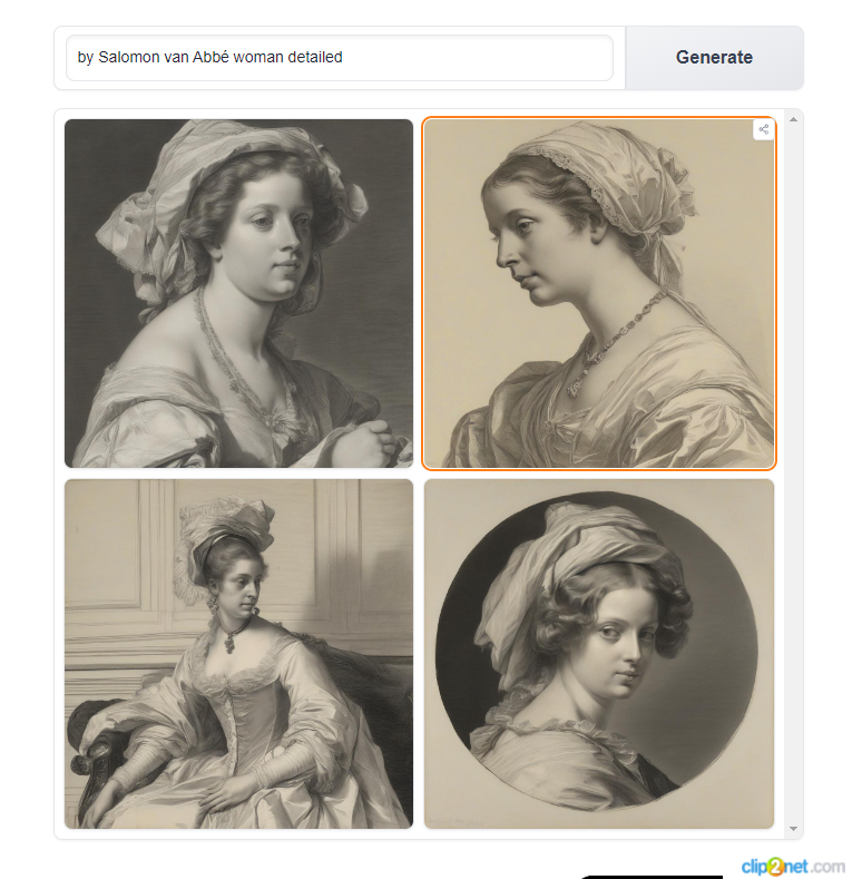 Покажу на примере художника  Salomon van Abbé , он есть в базе данных, потому что давнишний. И вот как нейронка делает его стиль .