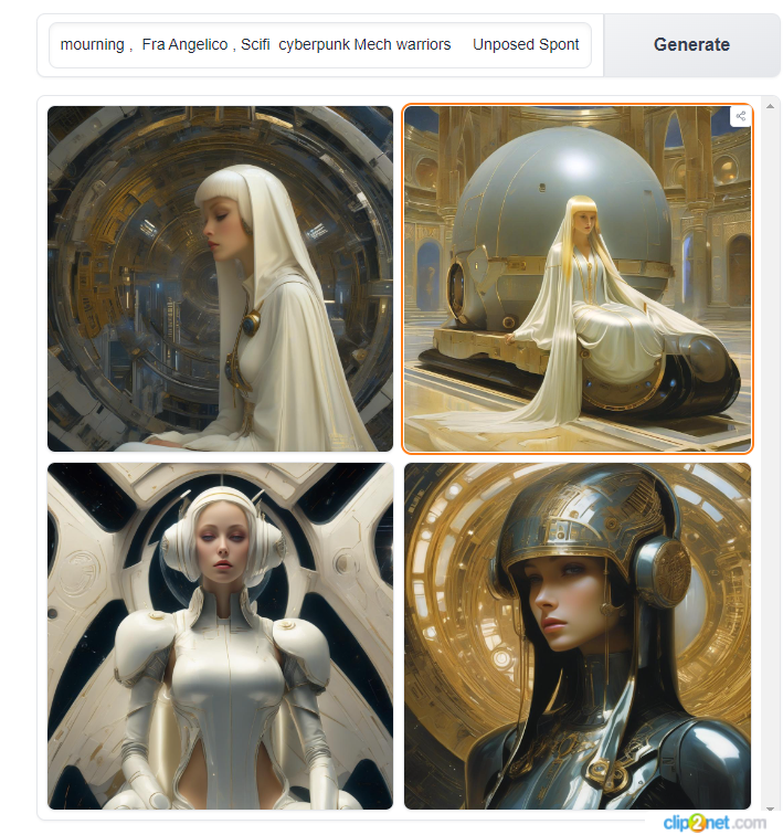 mourning ,  Fra Angelico , Scifi  cyberpunk Mech warriors     Unposed Spontaneous smooth motion , elegant, zero gravity, floating hair,  princess, spacestation , detailed,,  eyes