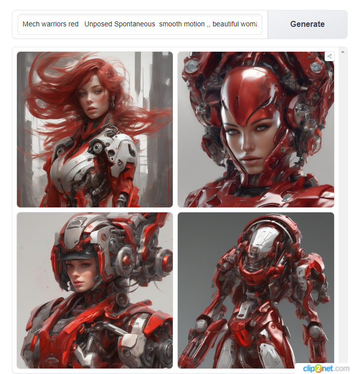 Теперь мехи. Обратите внимание на цвет. Red в начале - больше красного, в конце - меньше красного. И да, SDXL пофиг, если вы хотите, например, красный скафандр и белую стену, или наоборот.  SDXL все слова по отдельности воспринимает, и будет рисовать наобум. Вот FLUX - он уже понимает , но там куча своих тараканов, и флюкс куда хуже знает художников, а еще в нем пока нет негатив-промпта. Аналог флюкса - Шедеврум 2.0. Хорошее приложение, залипательное.