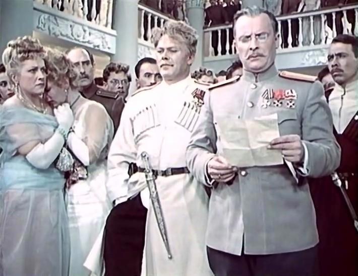 Была пошита прекрасная казачья форма, грамотно подобрано оружие, амуниция и прочие аксессуары. И очень мощная актерская труппа, причем наиболее блистают, актеры именно второго плана (но не последнего в данной картине по таланту). Борис Ливанов - генерал Мамонтов (харизма фонтанирует), Сергей Лукьянов - генерал Шкуро (чувствуешь что Пугачев вовсе не утонул в реке Урал), Великий Сергей Филипов - в роли казачьего урядника, это вообще отдельная песня, без него бы и фильм был бы гораздо слабее, Евгений Самойлов - аристократический полковник Бобров. Мелькнули даже молодые Николай Сличенко и Валентин Гафт. А вот Красные, кроме Олеко Дундича, Льва Свердлина, великого Пуговкина, ну и старого доброго Сорокина, смотрятся гораздо бледнее. Кстати, когда то в доинтернетовские времена было принято у мальчишек, играть в войнушку по мотивам новых фильмов. И всегда было тяжело найти желающих играть за немцев или белых, так после Олеко Дундича, не было отбоя от желающих играть казаков, помню один мальчишка спер у сестры красные ленточки, которые в те времена девочки в виде бантов вплетали в косы. Так он из этих ленточек сделал себе казачьи лампасы.