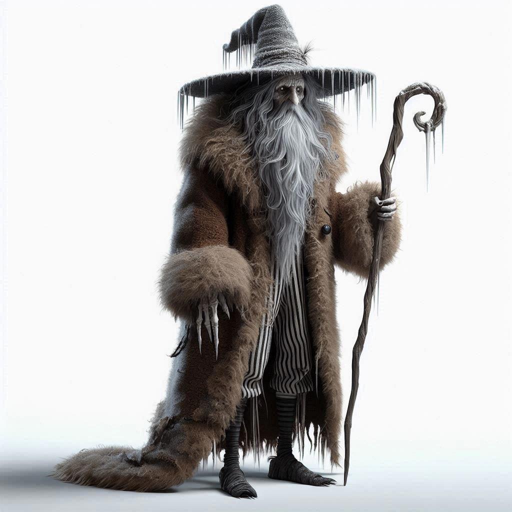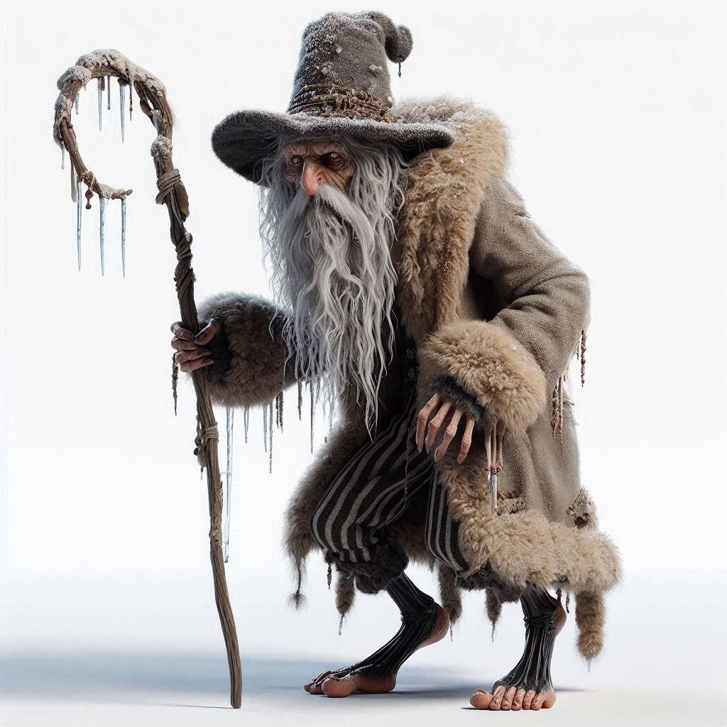 Я ничего не понимаю. О чем она говорит, о ком? Когда слышу, собаки лай подняли, пугают кого-то. Я выхожу, перед воротами старик стоит. Странный, страшный. В тулупчике распахнутом, ноги босые, черные. Это зимой-то! Шляпа на нем высокая, с полей ее сосульки свисают, и звенят так заунывно, друг о друга бьются. Дзинь-дзинь... Волосы длинные седые, борода до пояса, а взгляд из-под бровей такой тяжелый, будто камень могильный. И к тому еще клюка в руках. Он как меня увидал, клюку свою поднял и ну ей потрясать. И вдруг страшно так завоет: