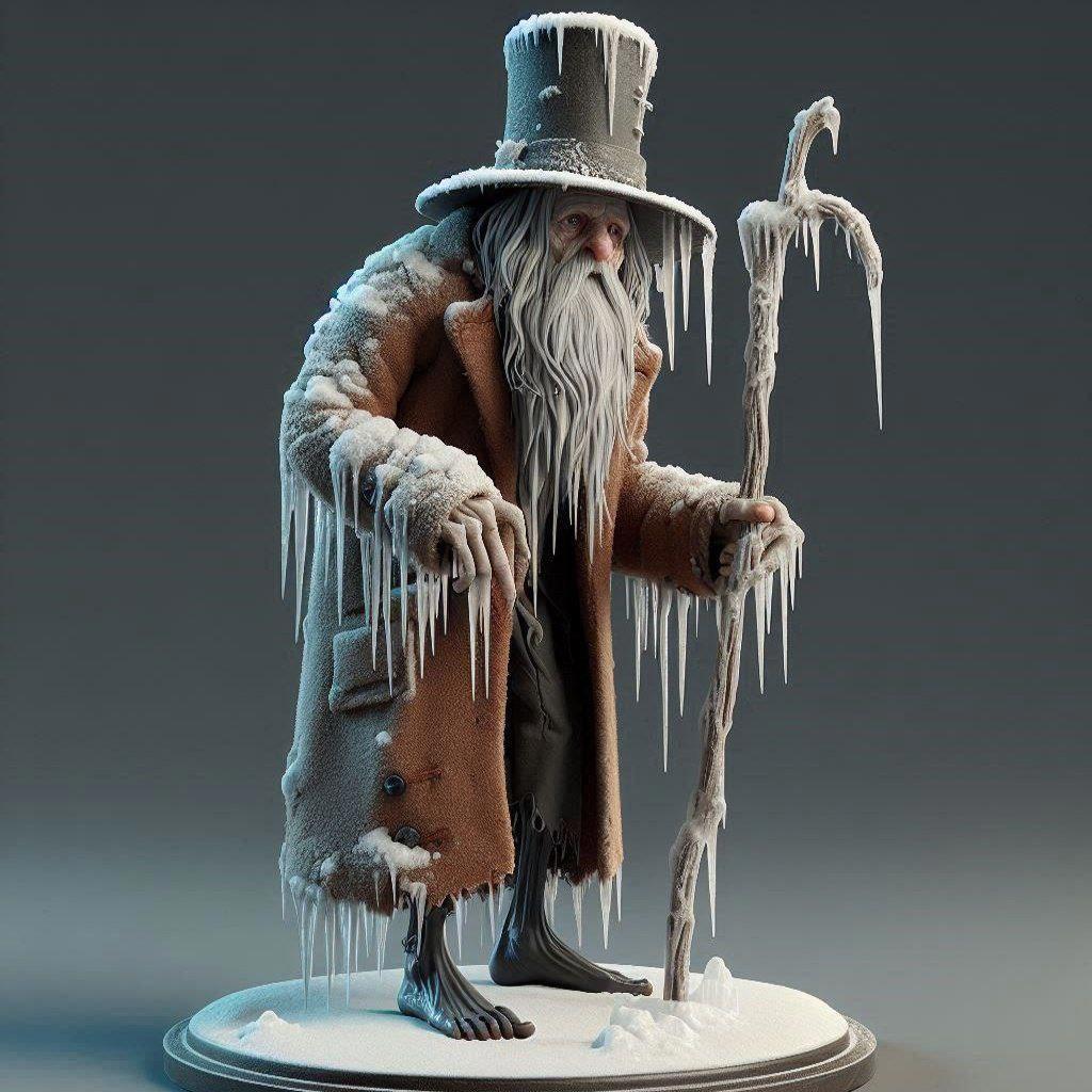 И пошел. Босиком пошел, по снегу. И туман его синий морозный за ним потянулся. Тут собачка одна не выдержала, выскочила за ворота и за стариком бросилась с лаем. Он, не останавливаясь, собачку только клюкой своей тюкнул, и она свалилась замертво. Убил! Заморозил! И, будто ничего не случилось, пошел себе. Только звон за ним завивается, сосульки его звенят.