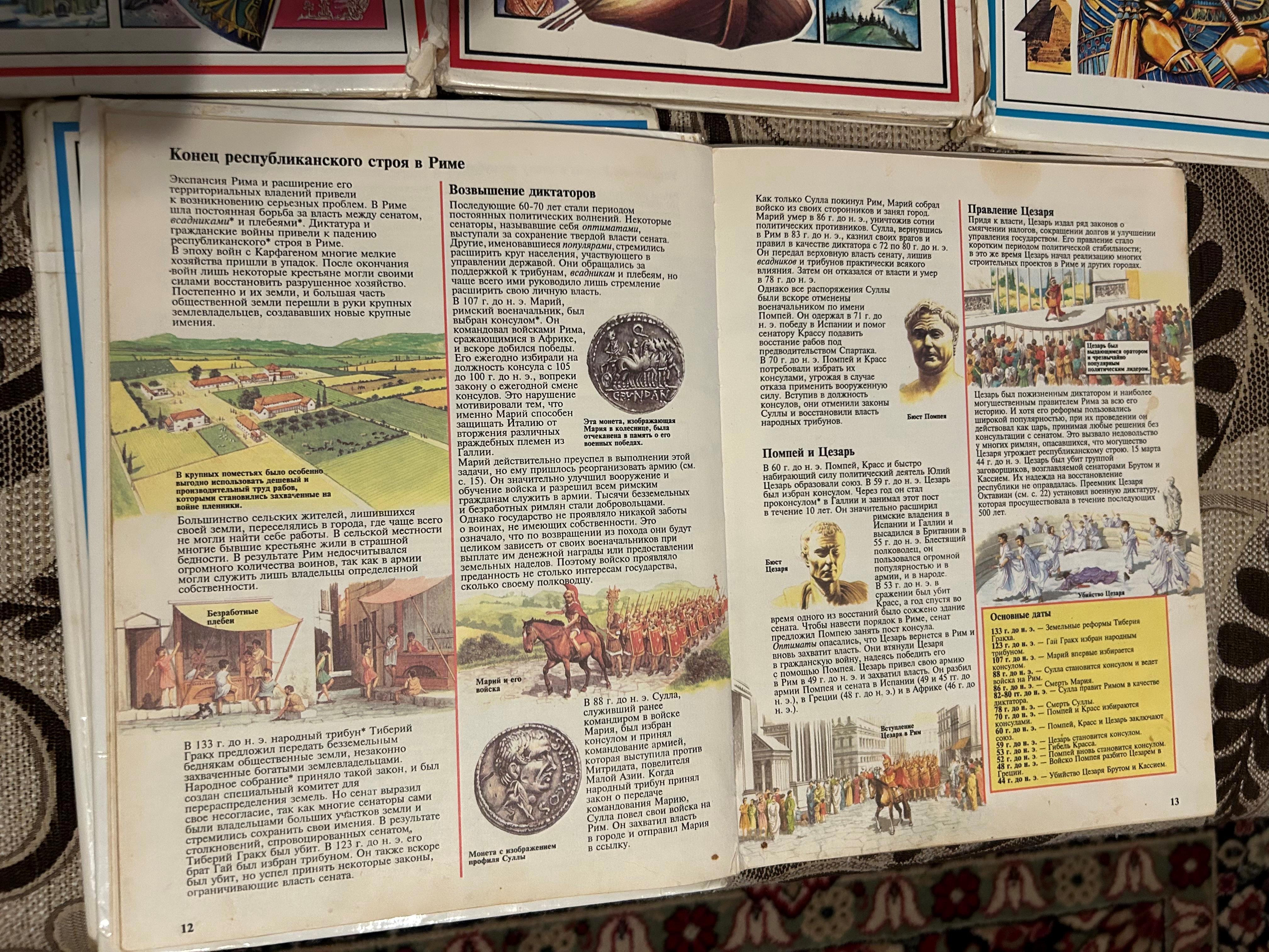 В школьные годы я обожал историю, и не в последнюю очередь благодаря таким вот книгам. Достать из в нашем городе тогда было делом тяжелым. Мама заказывала их своей подруге, которая ездила за книгами то ли в Москву, то ли еще куда-то. Стоили конкретно эти книги если не ошибаюсь 200-300 рублей за штуку, что по тем временам (покупались они примерно 20 лет назад) были весьма приличные деньги. Конкретно эта серия состояла из восьми книг…