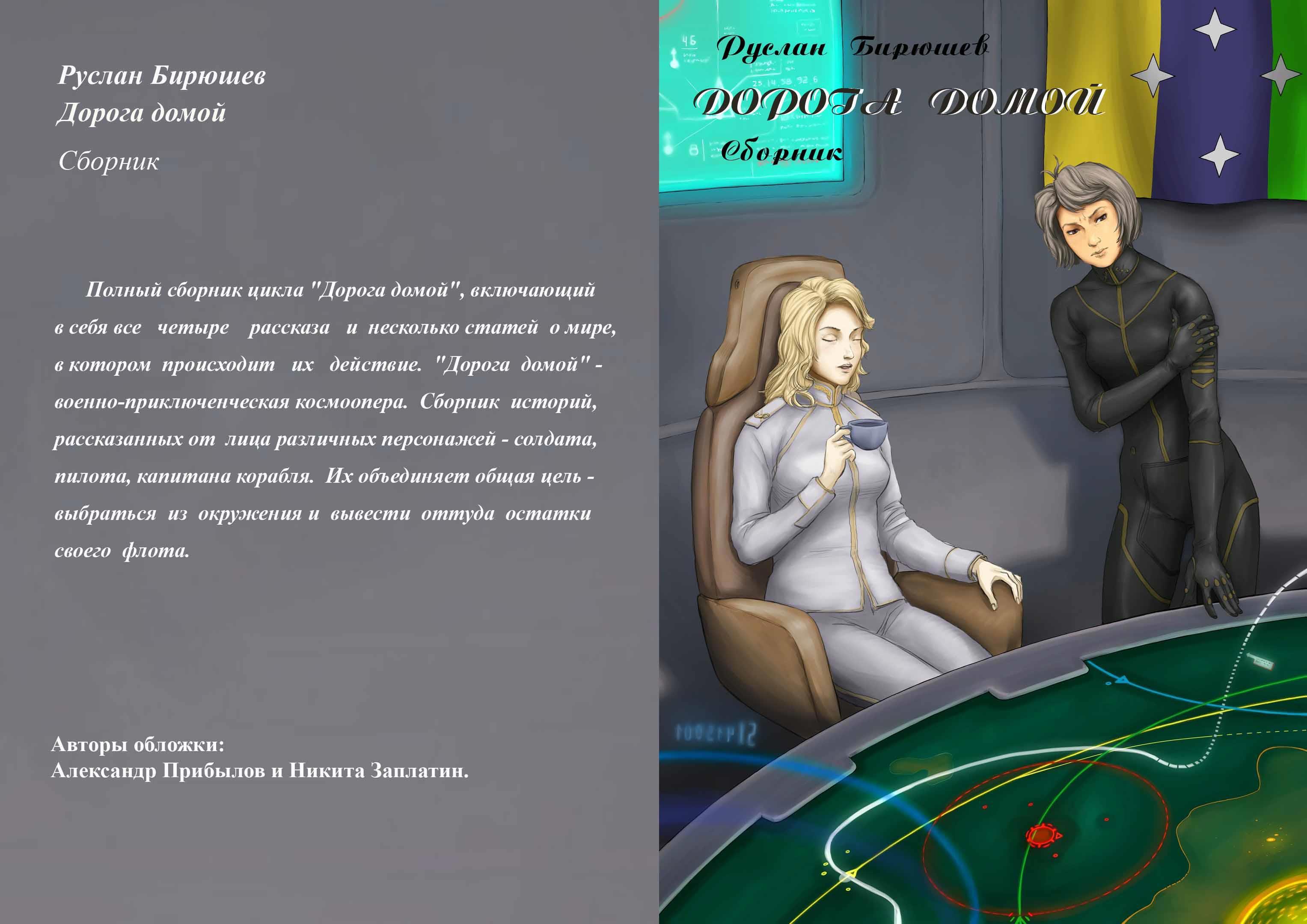 Обложка сборника "Дорога домой". Обошлось около трёх-четырёх тысяч рублей, пришлось работать двум художникам. А. Прибылов - чёрно-белый скетч, Н. Заплатин - работа с цветом.
