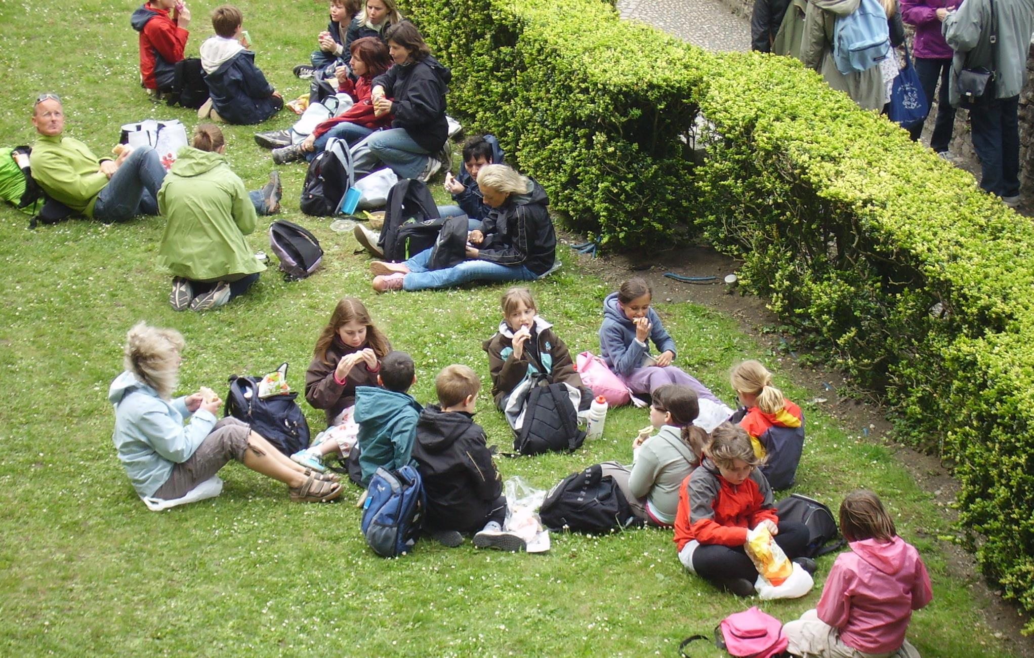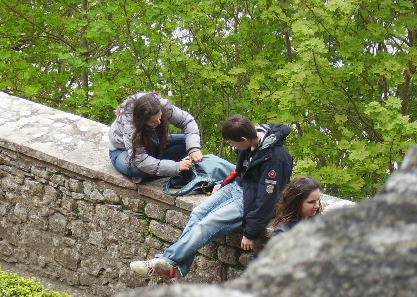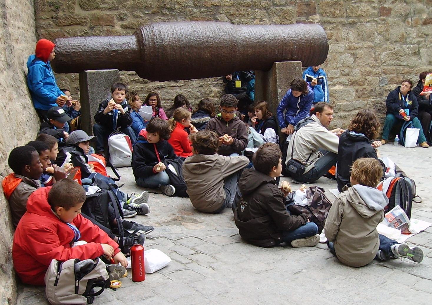 В замке во дворе сидели французские школьники. Усталые и босоногие, потому как только что пришли к островку пешком по морском дну.
