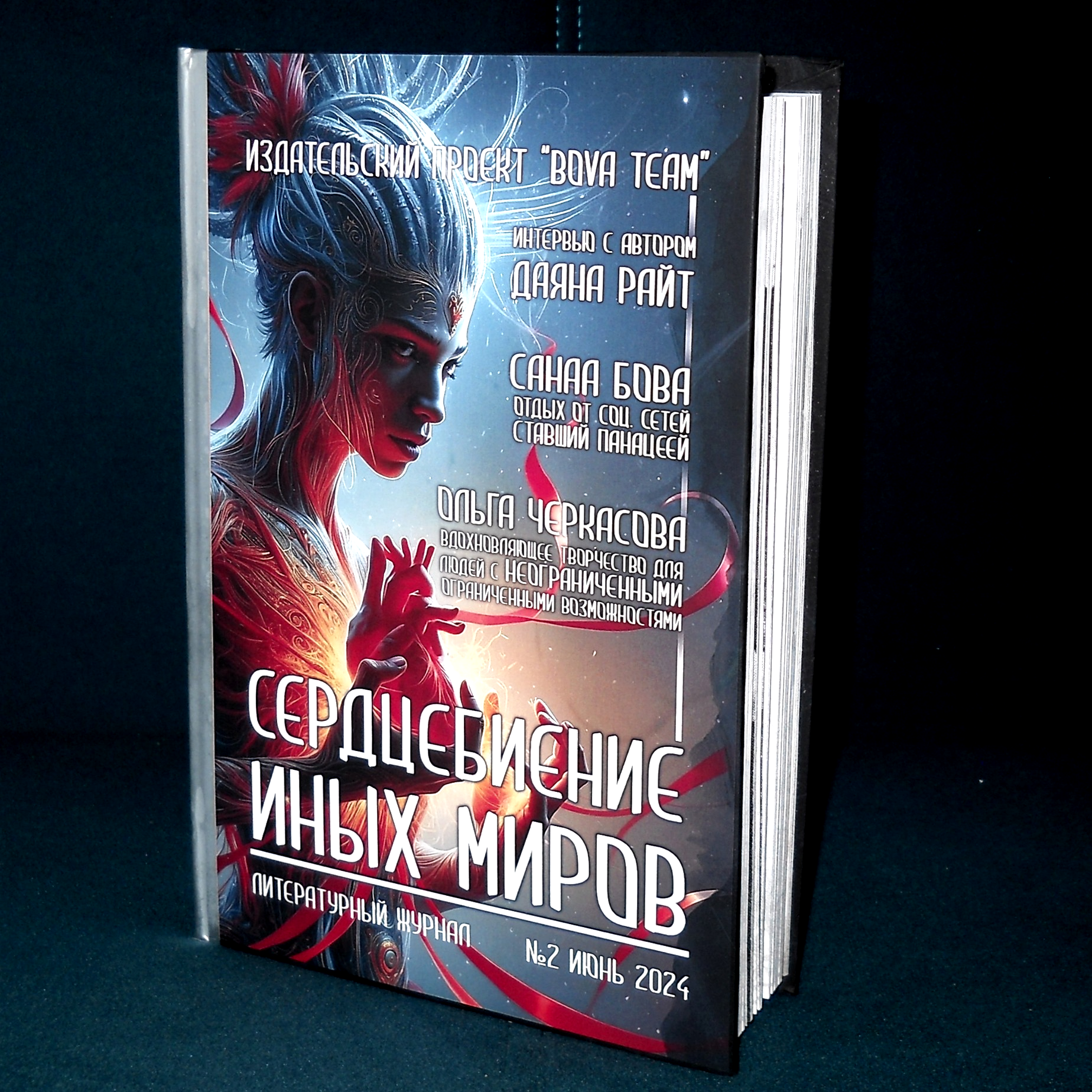 Выглядит просто потрясающе, как самая настоящая книга. Впрочем, так оно и есть. Огромное спасибо BOVA TEAM за возможность поучаствовать в проекте. Если хотите заказать себе бумажный вариант, то это можно сделать по этой ссылке — https://vk.com/market/product/zhurnal-quotserdtsebienie-inykh-mirovquot-vypusk-2-171563717-9007188