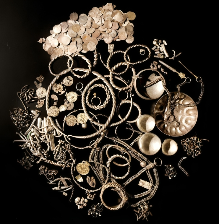 Волк (зверь), украшение в зверином стиле (воплощение звериной сути в ценности), нож (символ разделения), клад (ценность), кузница (место "рождения" ножа, также место работы)