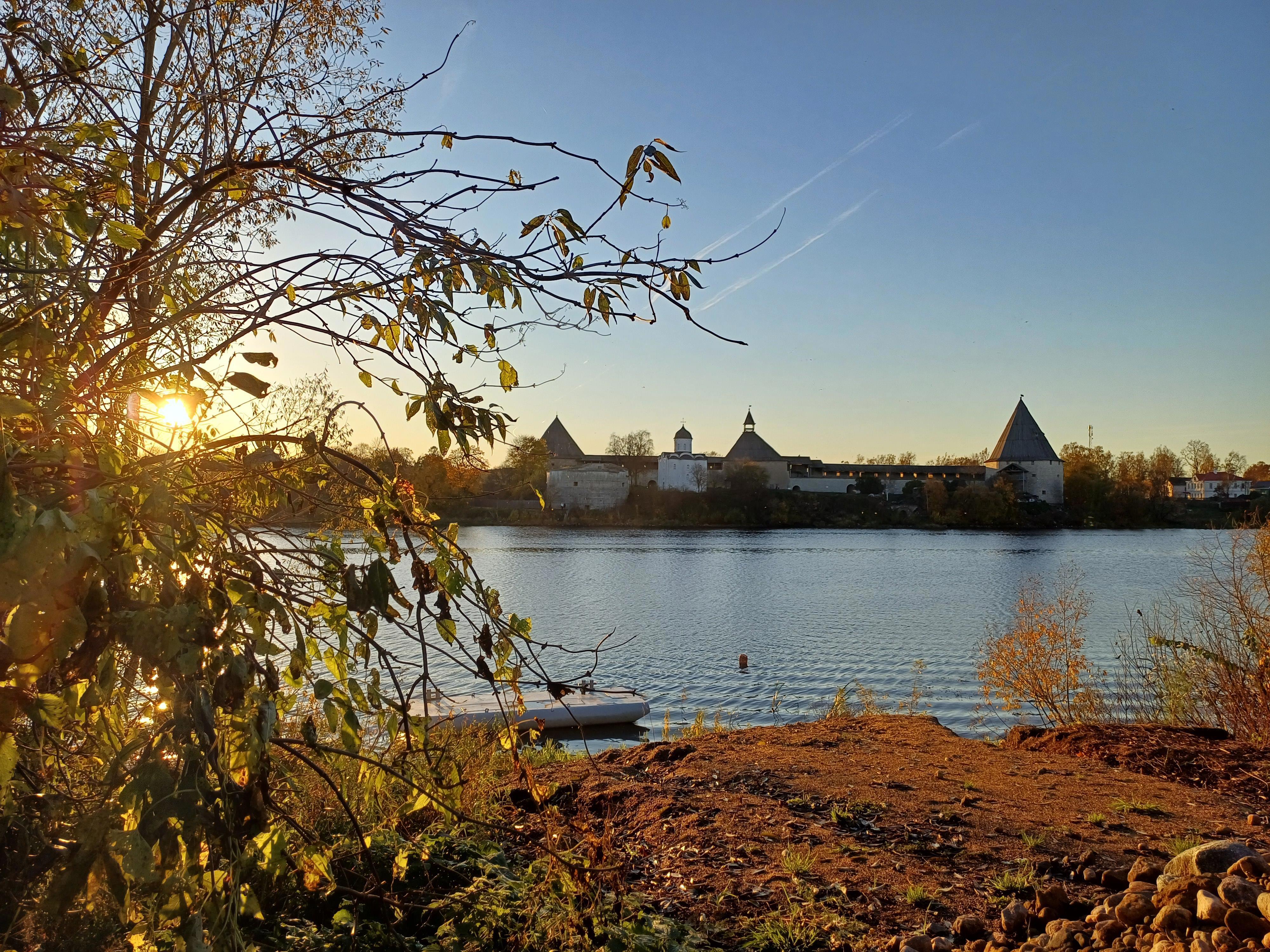 А если спуститься к реке - будет интересный вид на Староладожскую крепость: