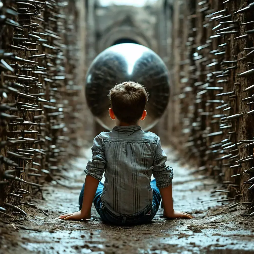 И тут что-то засвистело у него за спиной. Мальчик обернулся. Большая каменная глыба размером с баскетбольный мяч летела в его сторону. Юрка даже ойкнуть не успел. Со всего размаху глыба впечаталась ему в грудь и силой удара откинула его назад, ударив спиной о шар.