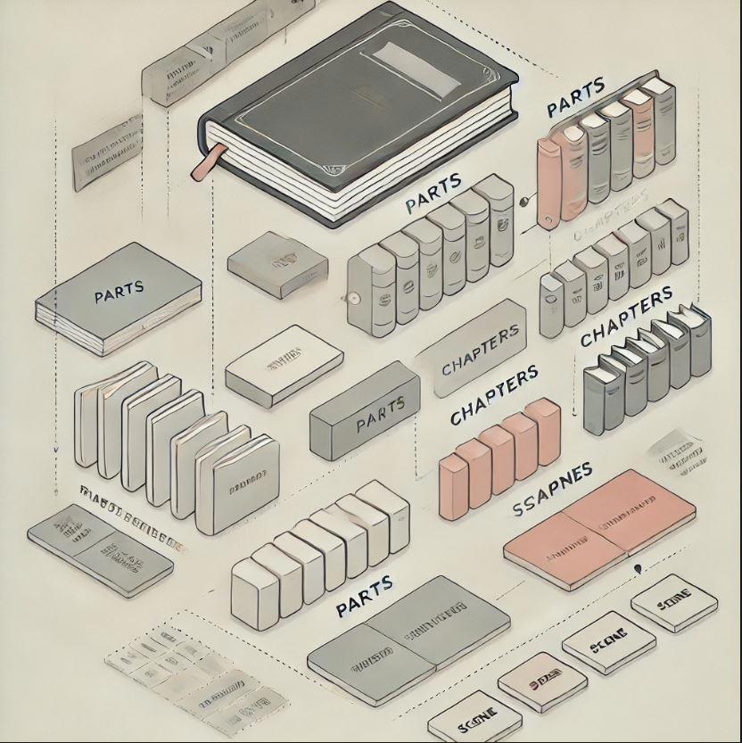 Книга, как завершенная структура (400-800 тыс знаков, включая пробелы) состоит из частей.