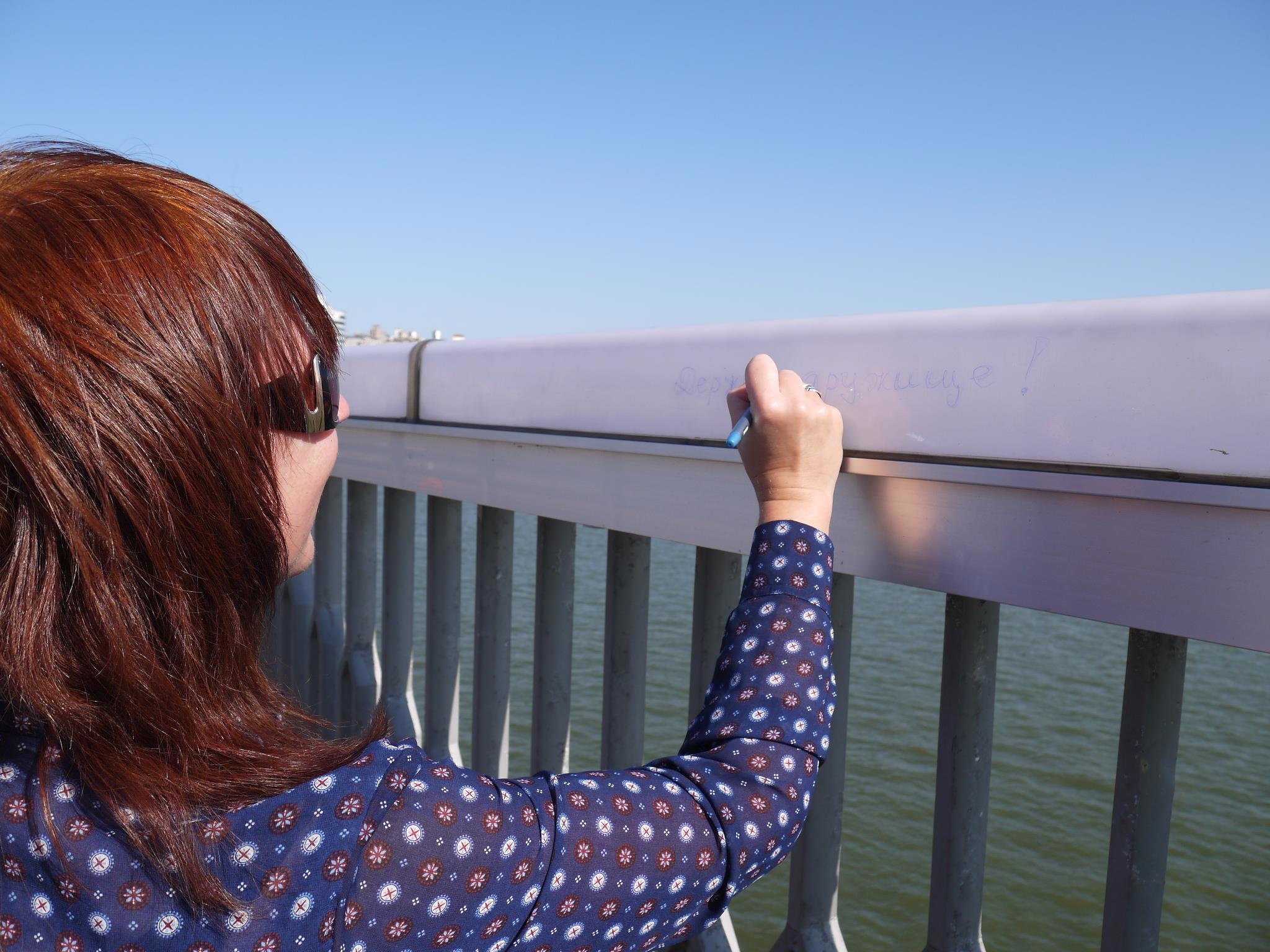 Впереди шла парочка, которая при всякой подходящей прочитанной фразе целовалась. А в конце моста, где, видимо, специально оставлены свободные места для надписей (имеются на разных языках), нарисовали сердечки. Ну и мы к ним присоединились: а вдруг на этот мост забредет русскоязычный самоубивец?:)