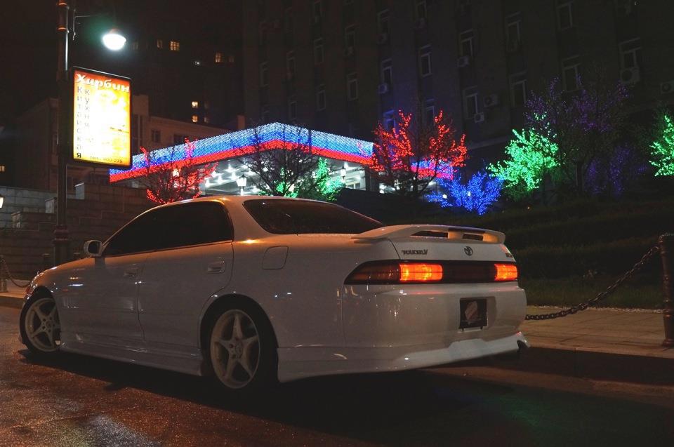 И конечно же, ничего подобного в реальной жизни никогда произойти не могло. Но если приглядеться - возможно, именно сейчас, где-то среди вот этих ночных улиц катит белоснежный словно айсберг, легендарный Самурай - Тойота Марк2 в 90-ом кузове...