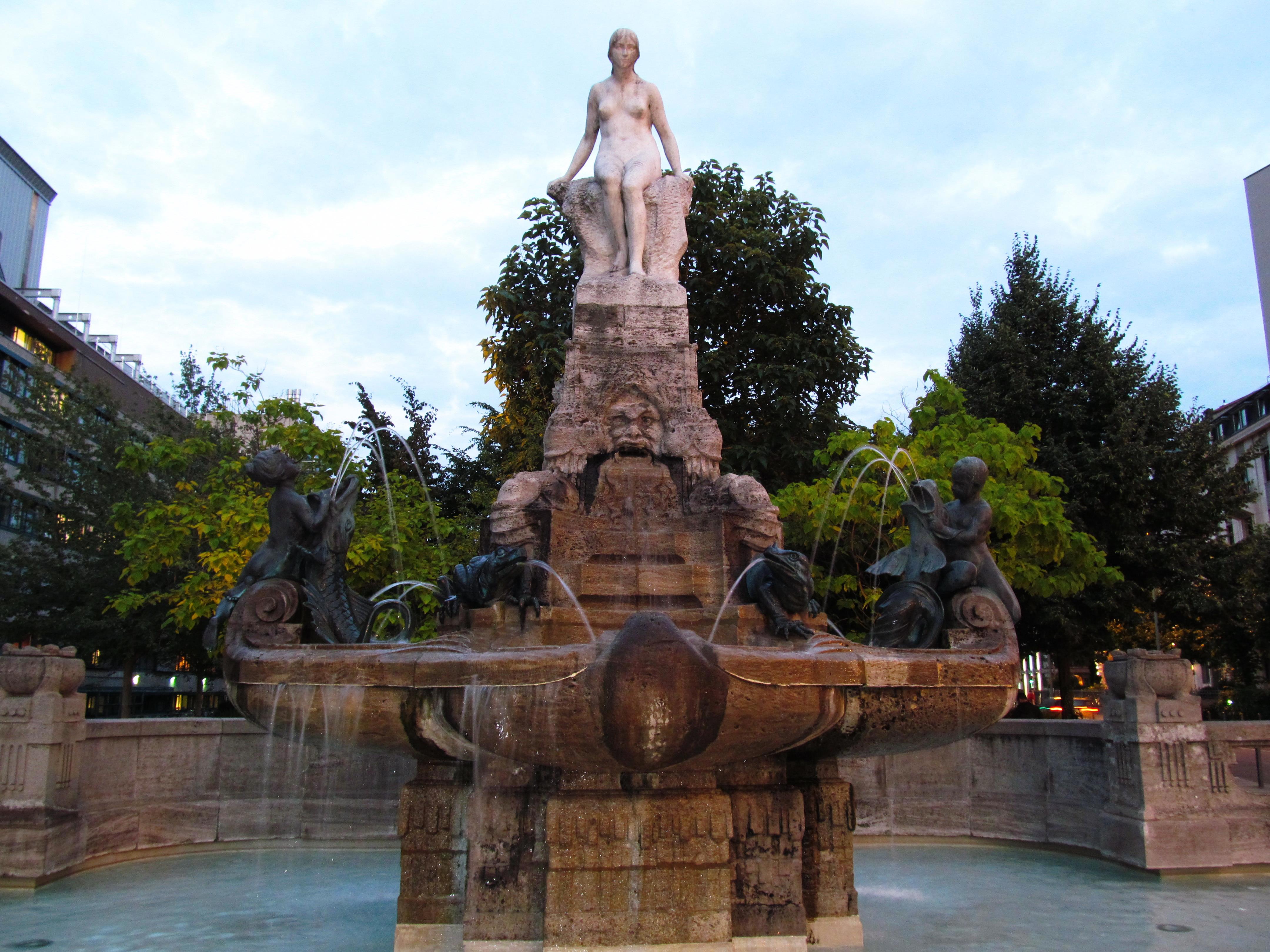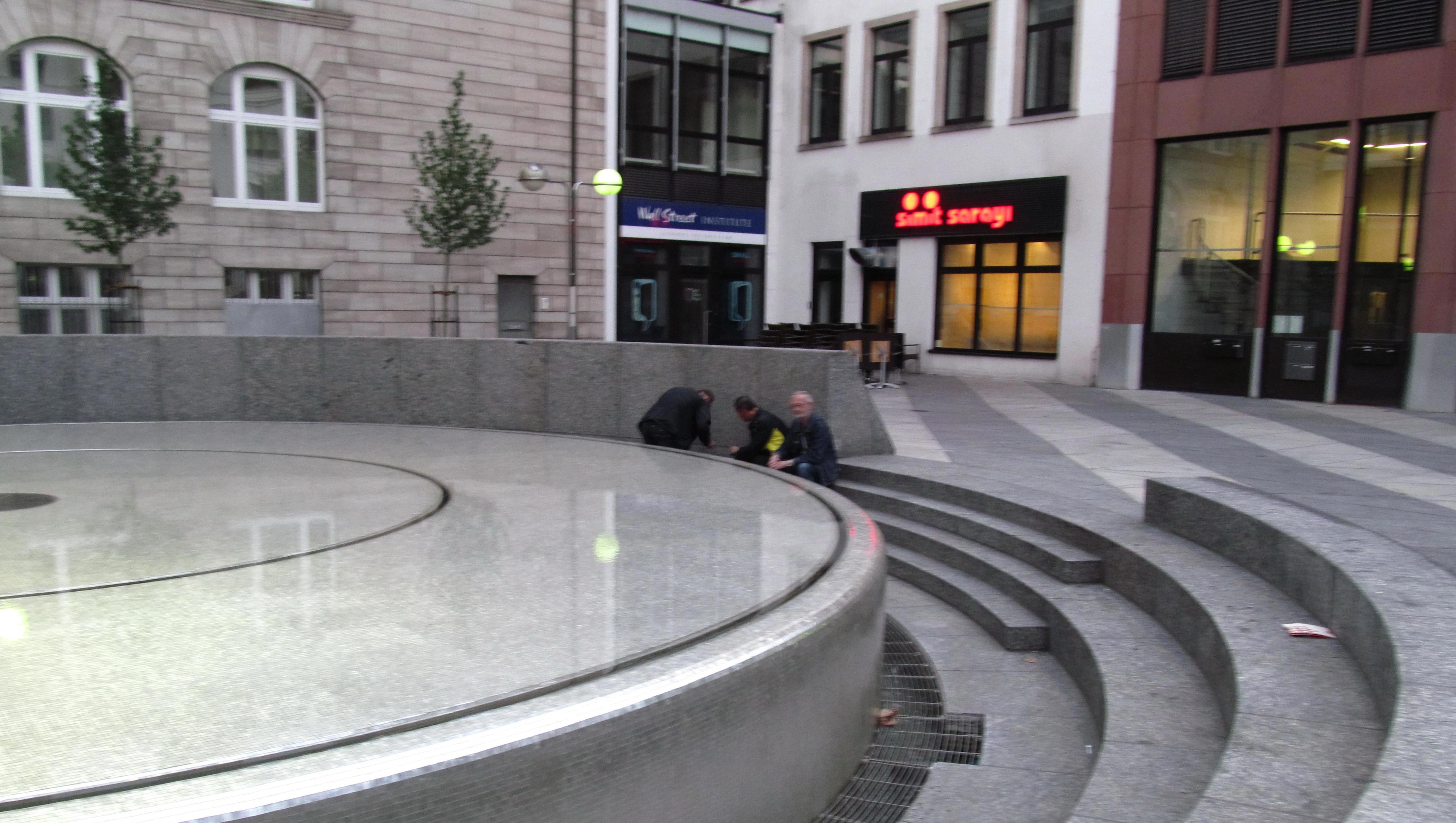 У фонтана (бизнес-центр) посидели немножко… уже и темно, хоть глаз выколи…