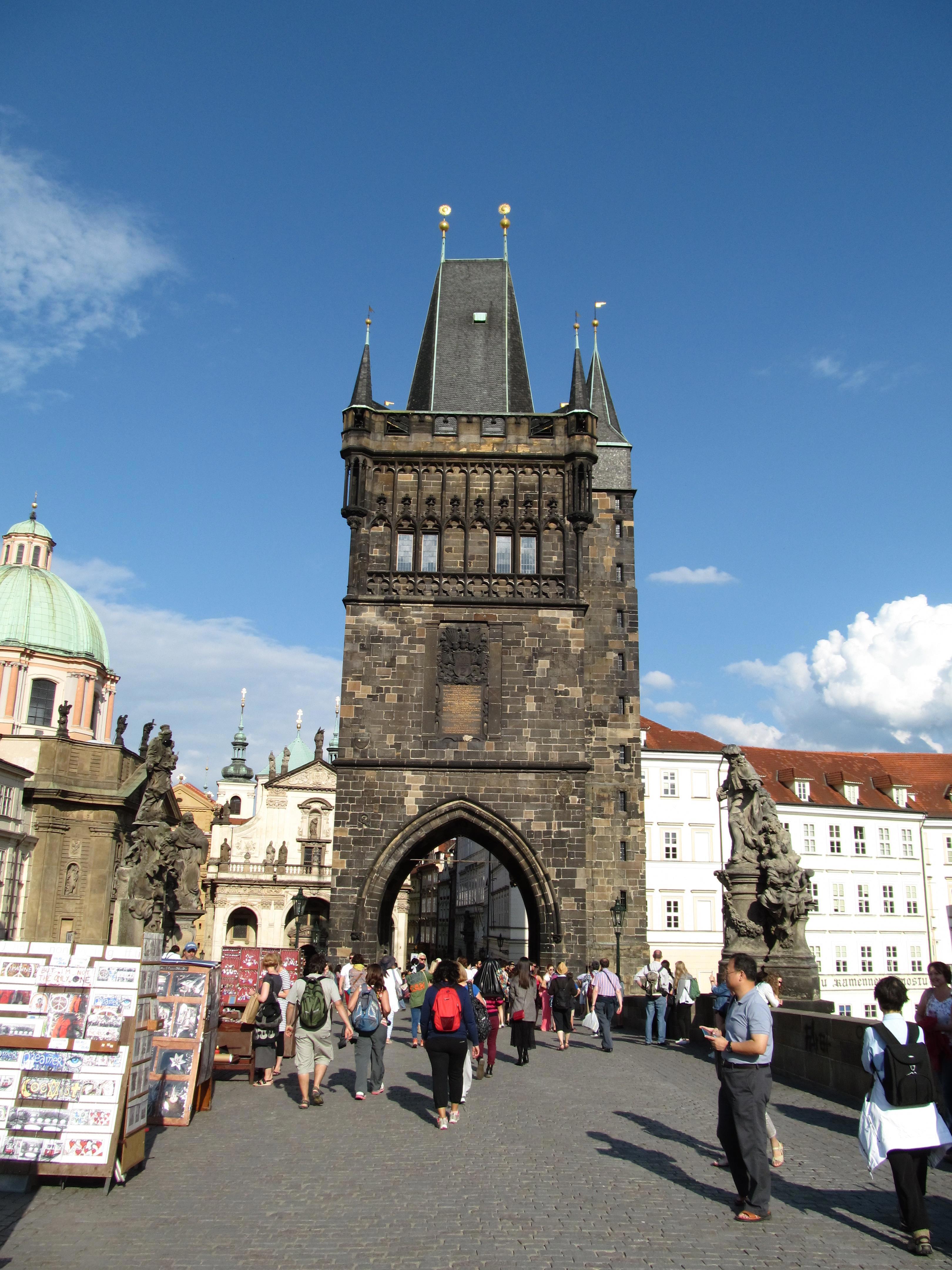 Вышли к реке как раз рядом со знаменитым «Танцующим домом», да так, вдоль реки, и пошли – прямо до Карлова моста… В Праге в магазинчиках только кроны берут, про евро сказали – меняйте…