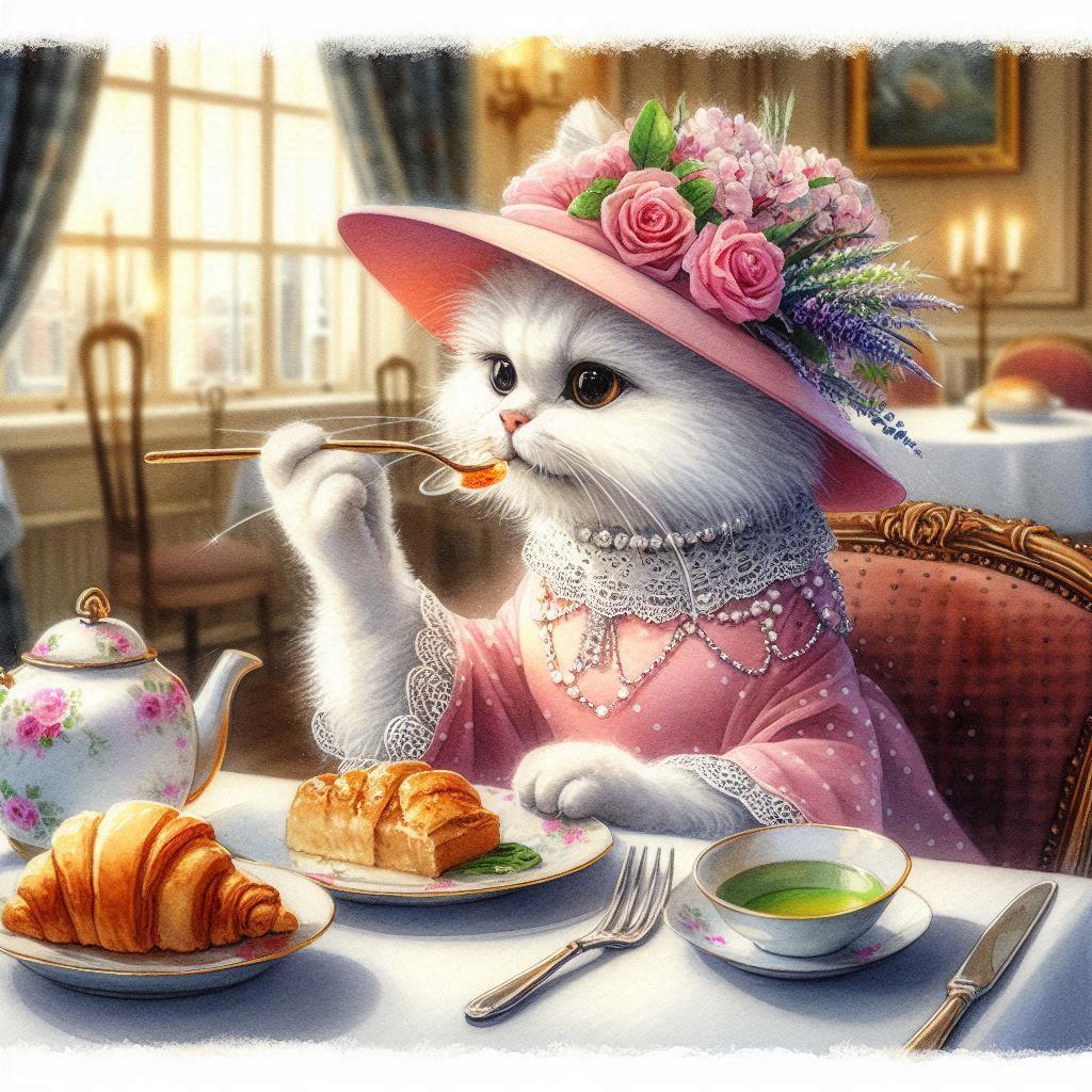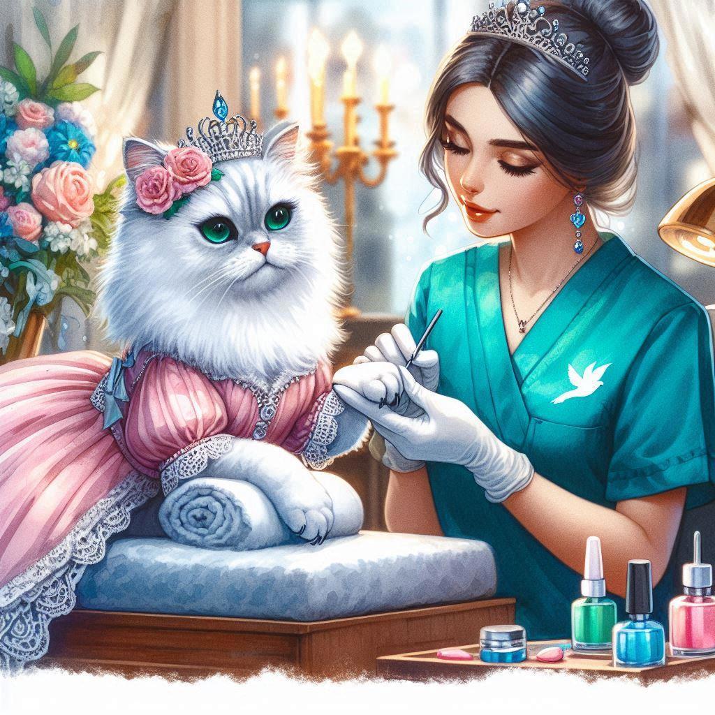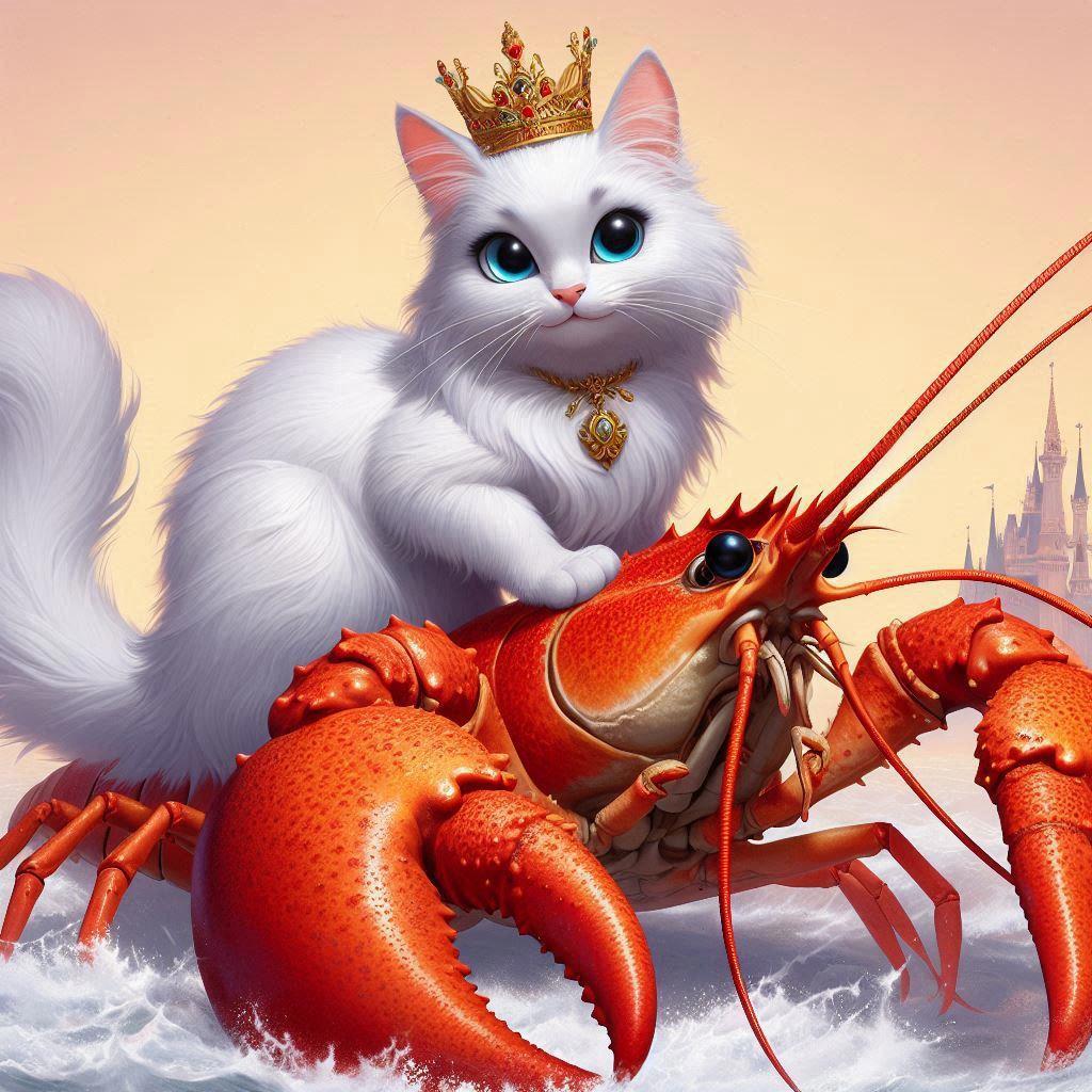 Но одну загадку все-таки рискну загадать. Посередине ряда картинок, перед "бескрылочными" кошками, есть белая голубоглазая кошка в короне. Какое слово загадано с помощью этой картинки? (Пусечка, не подсказывай)