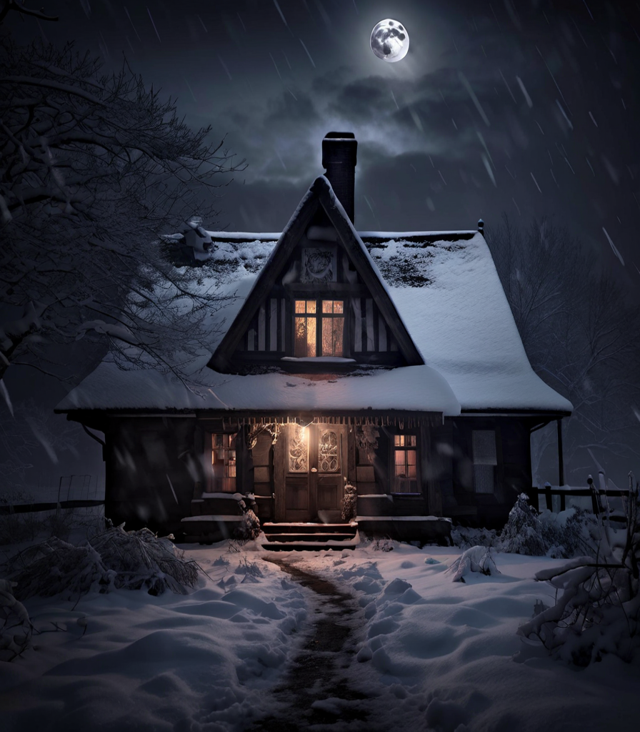Дом, как и все вокруг, был заметен снегом по самые окна. На крыше его тоже лежал, немного сползя набекрень, будто связанный из драгоценного мохера, пушистый белый берет. А из трубы, шпилькой воткнутой в это пышное великолепие, валил полупрозрачный дым, тот самый, чей запах приятно щекотал ноздри. И это обстоятельство радовало пока что больше всего. Ведь если есть дым, значит, есть печь, или хотя бы какой-то очаг, возле которого можно обогреться. Окна, кстати, призывно светились теплым желтоватым светом. А все вместе, вся эта картина – дом, утопший в снегу, подсвеченные оконца, украшенные морозными узорами, дым из трубы, столбом поднимающийся в безоблачное небо прямо к сияющей луне – все это напоминало ему новогоднюю открытку. Бармалей снова об этом подумал. Холод, покой, благолепие и ощущение приближающегося чуда – вот составляющие самого главного зимнего праздника. И они все были тут налицо.