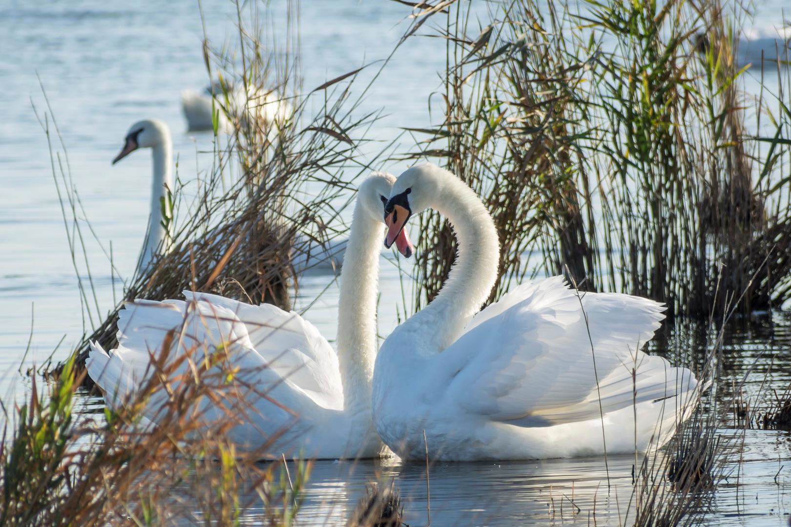 На озере, кроме лебедей живут чайки. Что крачки, что серебристые.