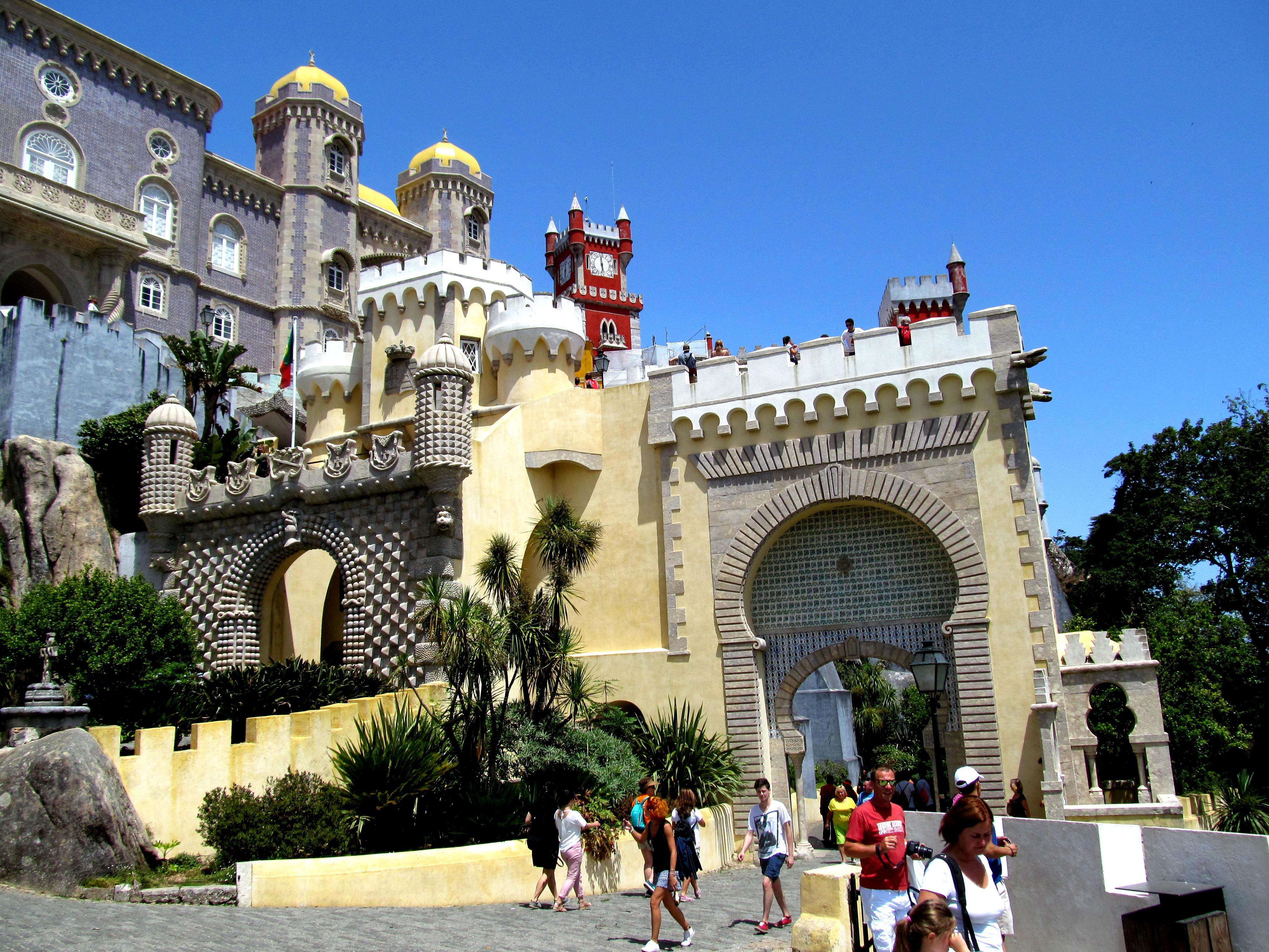 Синтра вблизи – еще более красивый, чем на рекламном проспекте, еще  более пряничный. И красивых девушек – полным-полно! Нет, это не город –  это просто праздник какой-то. Королевский дворец с трубищами от печек,  и, конечно, дворец Да Пена – тот самый, который как пряник. Он на горе.  Туда на транспорте надо. Транспорт нашелся быстро: стоило только  сфоткать старинный красно-белый «Ситроен 2С»!!! На таком когда-то  матушка настоятельница гоняла из фильмов про жандарма Крюшо. Только я  его снял – ту же подскочил и водитель. Улыбается - лучшая, говорит,  машина в городе! Кто бы сомневался… Ну, и цена устроила – 5 евриков с  человечка. Как на автобусе!