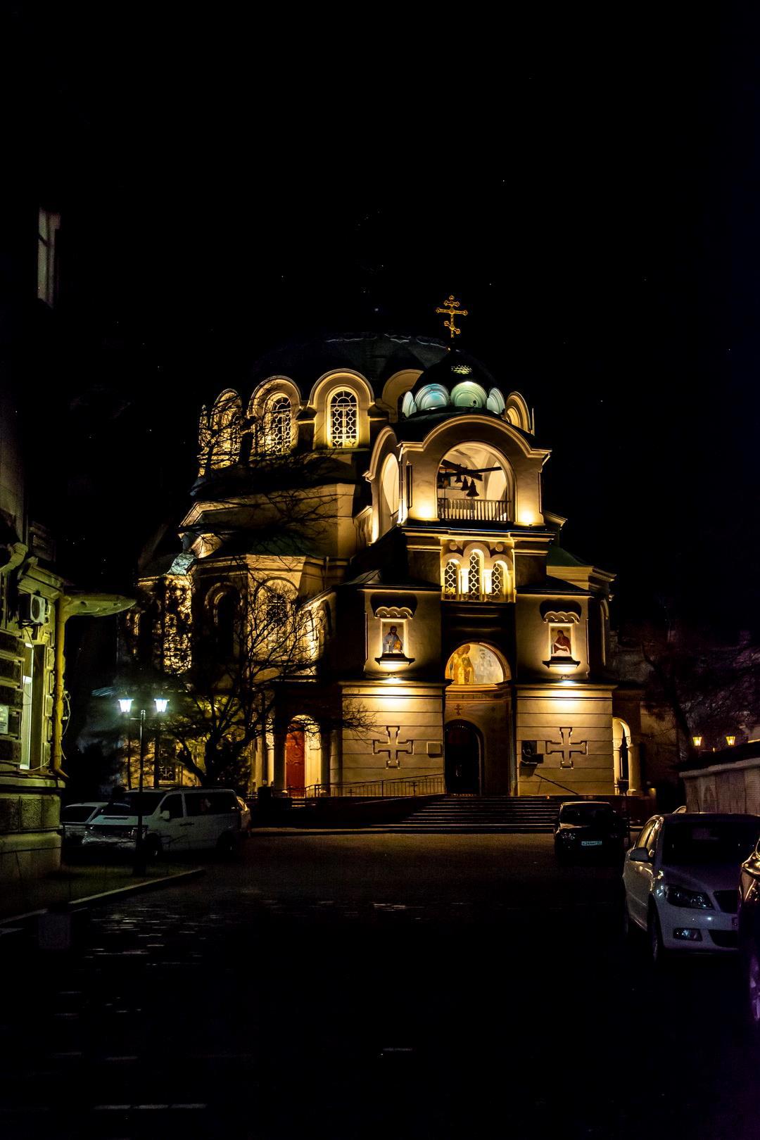 Но мне, честно говоря, этот храм больше всего нравится ночью. Ночная подсветка делает его совершенно мистическим и небесным. Он словно парит в темноте и показывает дорогу в горние выси.