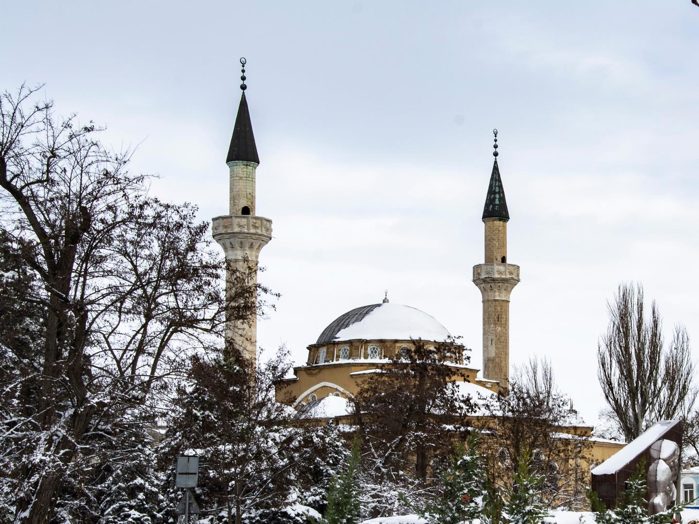 Напротив стоит та самая Гезлёвская Мечеть - Джума-Джами. О ней хочу рассказать немножко подробней.
