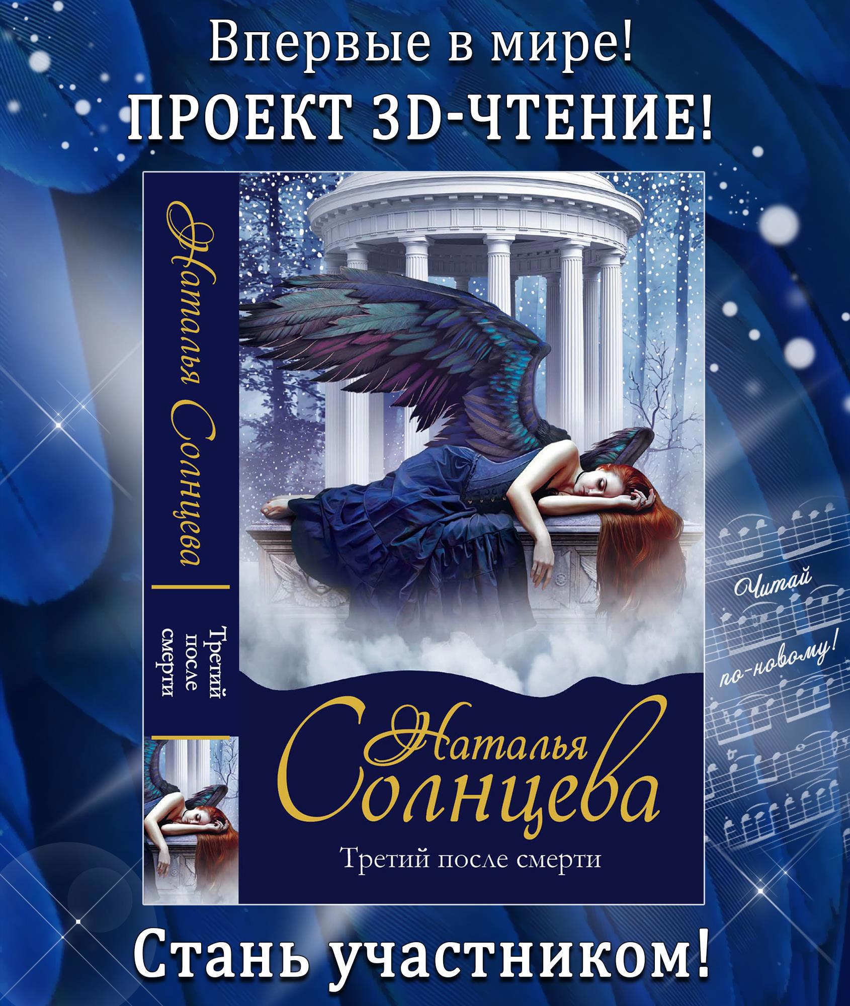 И только сейчас, когда книга выходит повторно, меня осенило! На обложке для новой книги "Третий после смерти", которая пришла из издательства, была изображена молодая женщина, похожая на ангела, в синем платье и с крыльями за спиной, на фоне зимнего пейзажа…