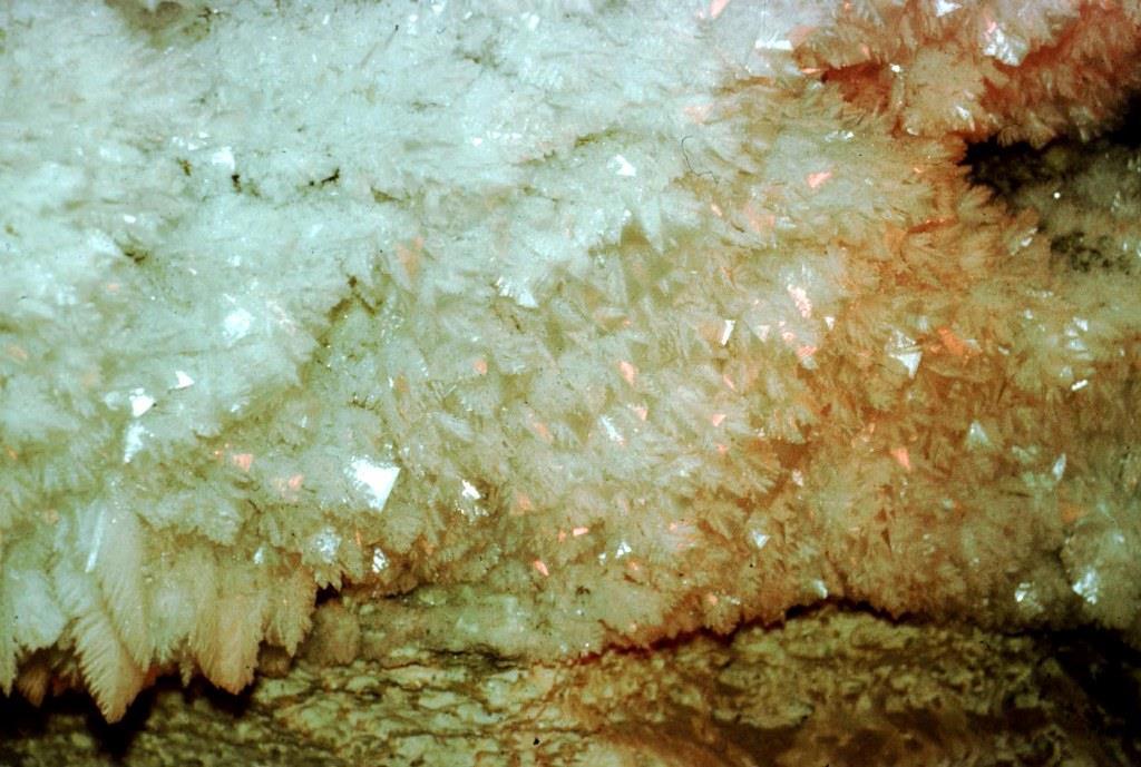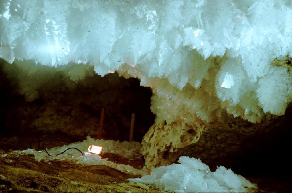 Ближе ко входу на потолках "растут" снежные "цветы"  и сталактиты.