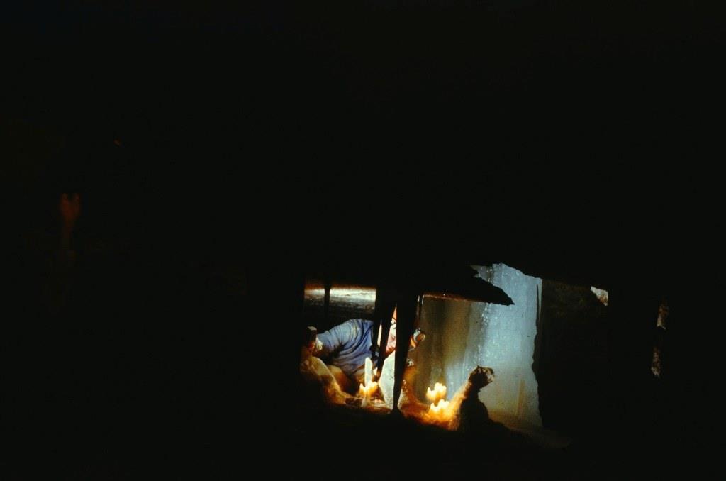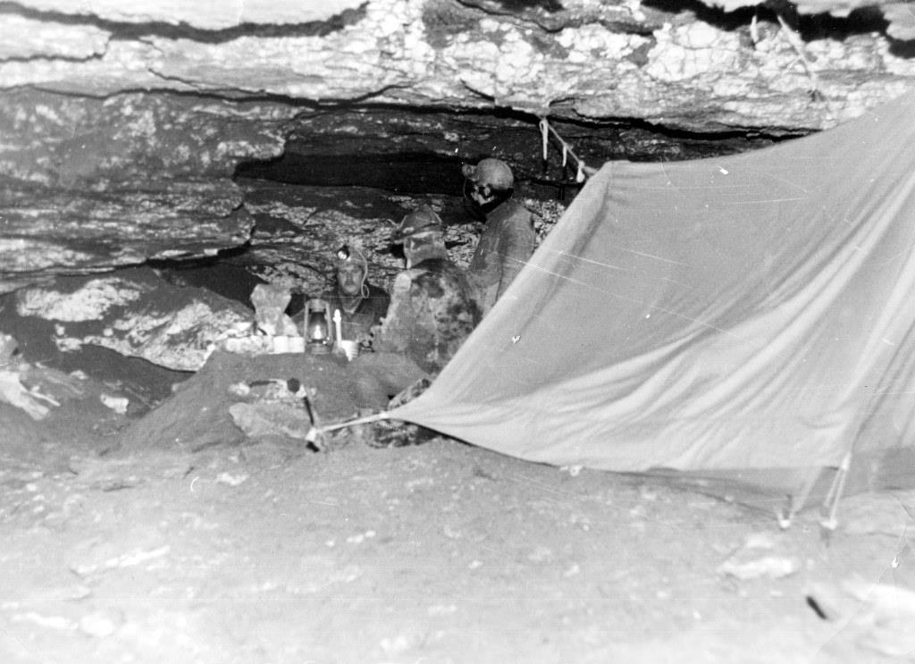 Наш скромный лагерь на берегу подземного озера. Лампа "Летучая мышь", стол слепленный из глины. Человеку не так много надо в жизни для полноты жития и ощущения счастья.