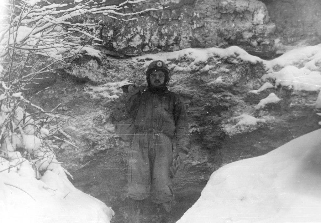 Ваш покорный слуга на выброске из подземного лагеря. С другом присоединились к знакомой команде, ползали,  фотографировали. Пещера К-4 Водная в Кулогорах. Туристов туда и сейчас, слава тебе Госпади, не водят. Дальше на лыжах, тащим салазки до аэропорта. Недалеко, километра 2 по снежной целине. Ну для подготовленного и мотивированного человека ничто. Нытики пусть по Таям от зимы прячутся. Слабаки.