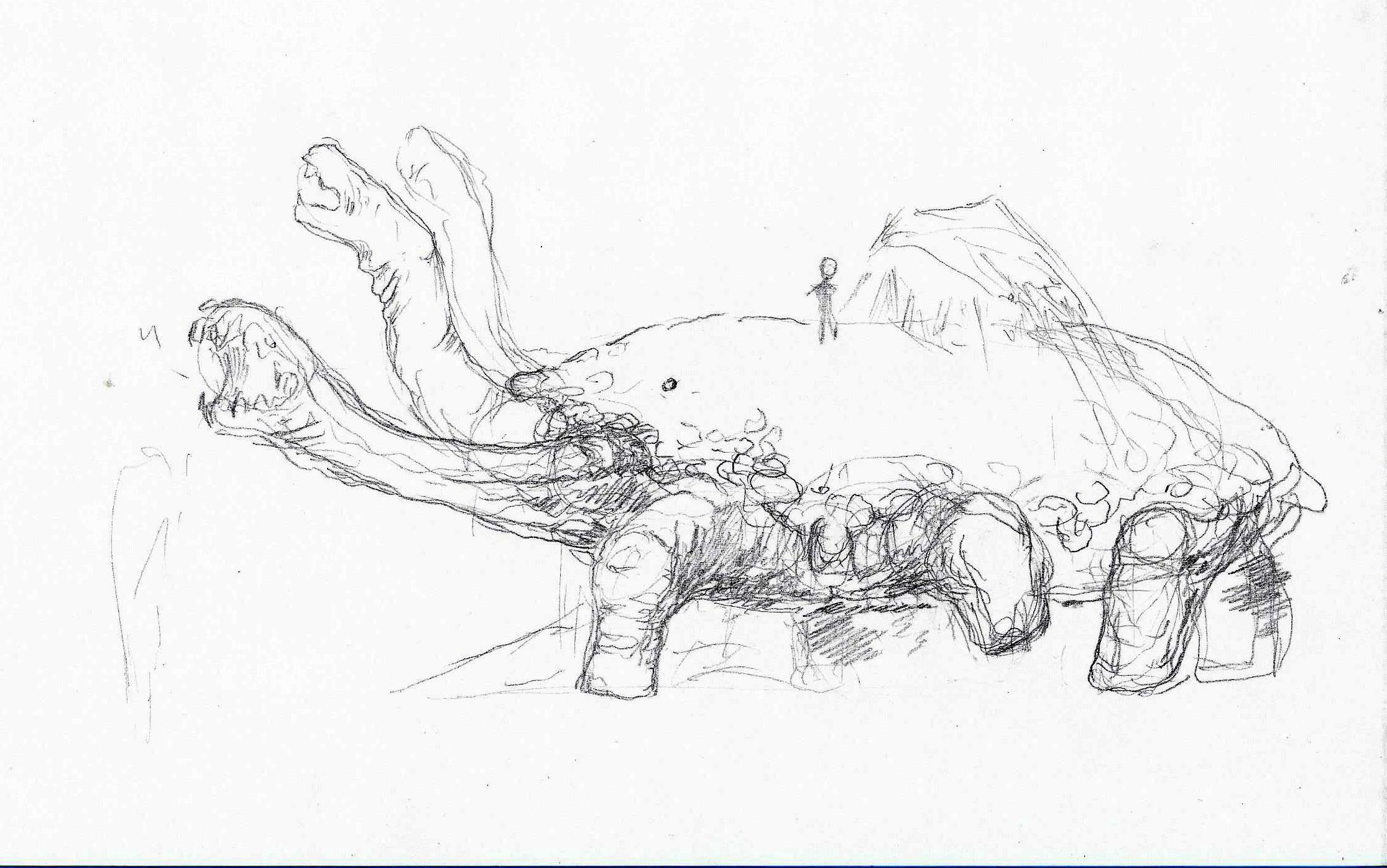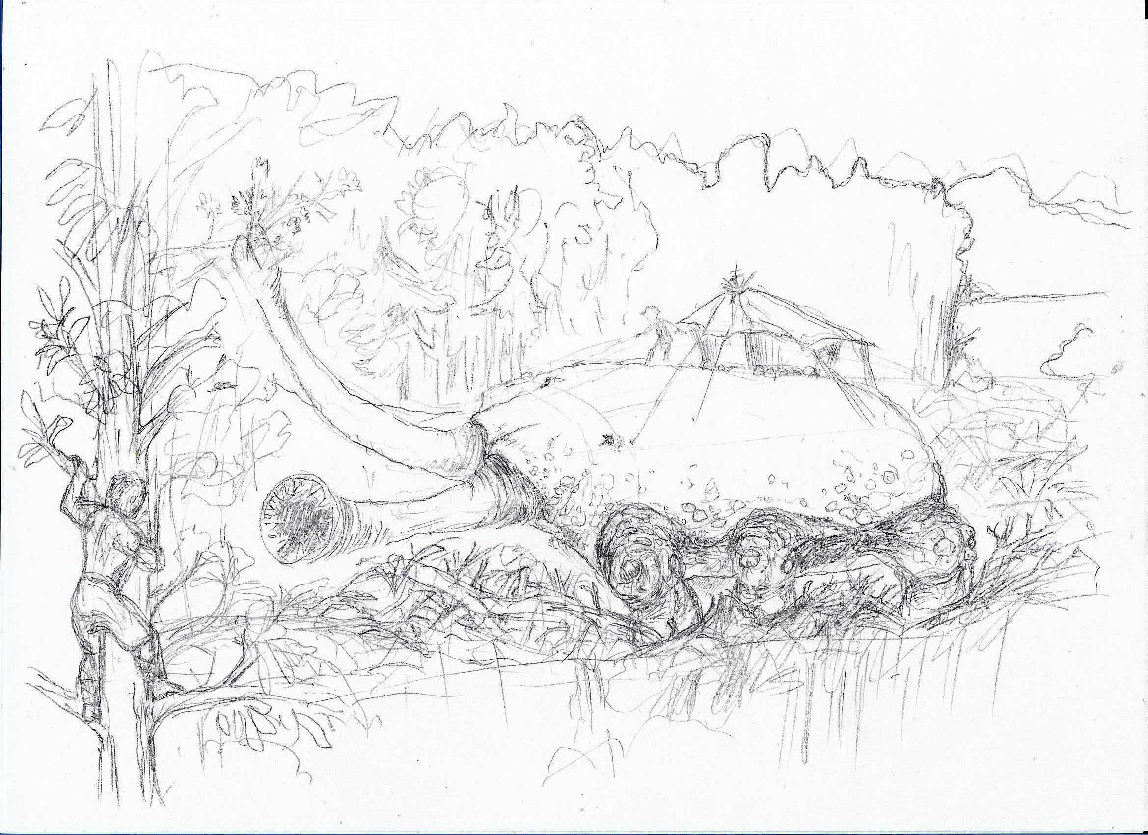 Автор: Marika StanovoiДа. давно-давно я пообещала нарисовать пылесос на 6 ногах и с тремя шлангамэ слонокраба с тентаклями... тварь которая кушает лес...И возит на спине халупку с простынёй... В общем техзадание было страшное и ужасное. Главное, зыверюга большая и идет, лес жует, пни и коряги разбрасывает. И как ее рисовать - неизвестно, потому что я люблю рисовать нечто висящее в нигде. А тут надо грунт, ёлки-палки и всякое такое что я не люблю.
