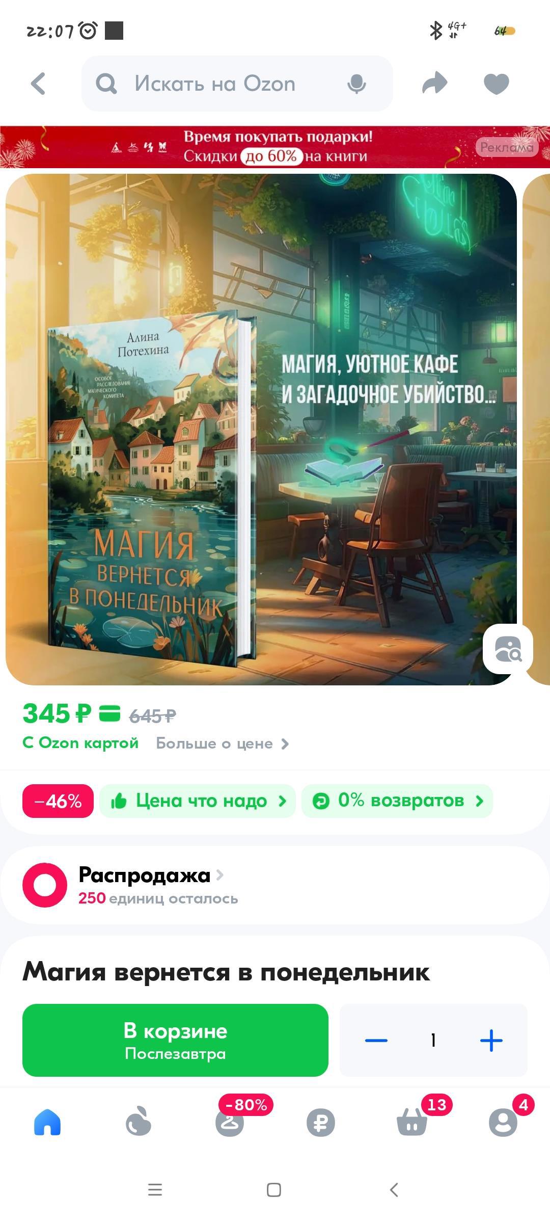Пока все готовятся к приближающемуся новому году, Валберис и Озон поставили офигенную цену на мою "Магия вернётся в понедельник". Если кто-то хотел, но ждал удобного момента - он настал. Налетаем?)