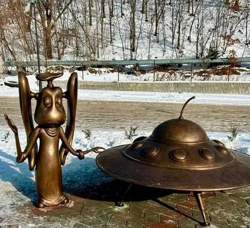 Настоящие страсти разыгрались в Дальнегорске (Приморский край). Благочинный Дальнегорского благочиния иерей Андрей Васякин от имени верующих города обратился к мэру с просьбой убрать арт-объект в виде пришельца.