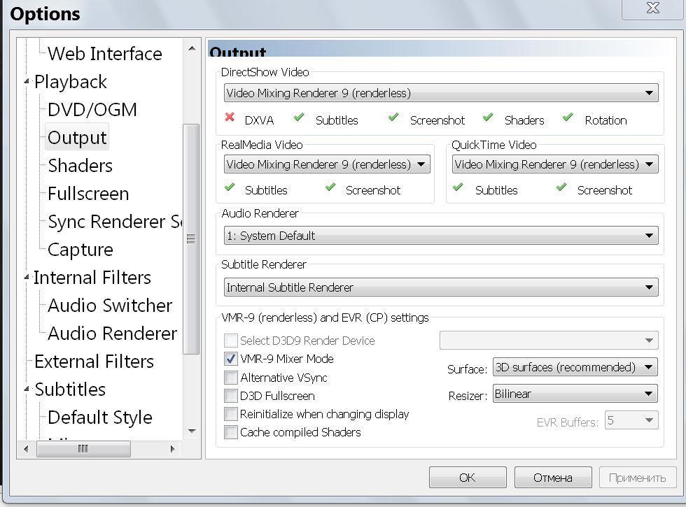 KLite последний, на другом компе тот же файл играет ОК. В настройках опции output ставлю те же.