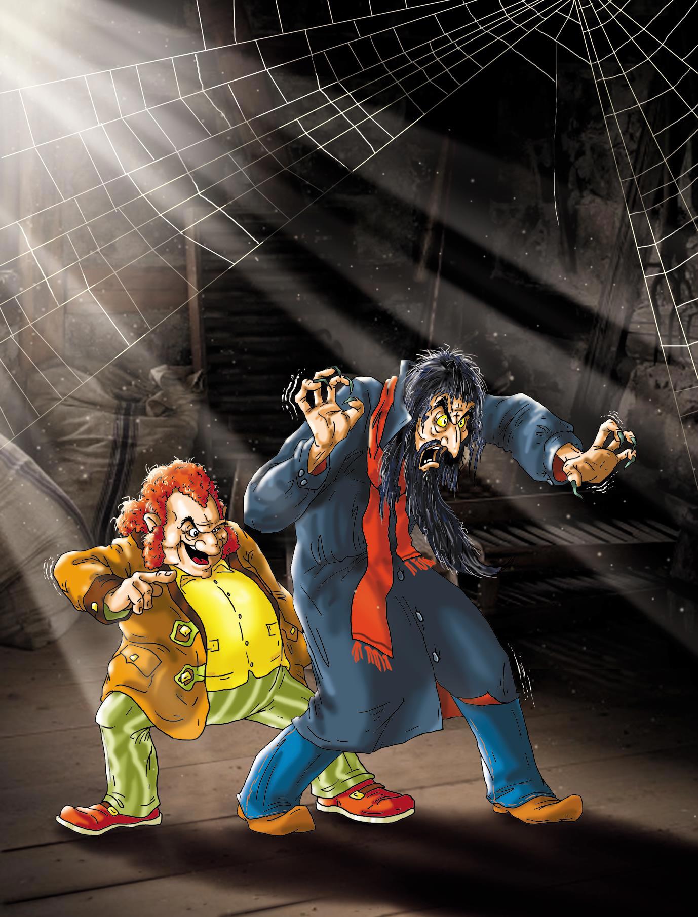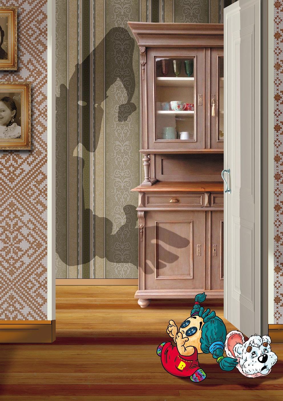 В ту же минуту по буфету, по кухонной стене поползла гигантская чёрная тень. Это был профиль жуткого существа с необыкновенно длинным загнутым носом и огромными ручищами. Ног у тени не имелось вовсе, и длинное платье колыхалось, не касаясь пола. Тень не спеша плыла по воздуху, словно настоящее привидение.
