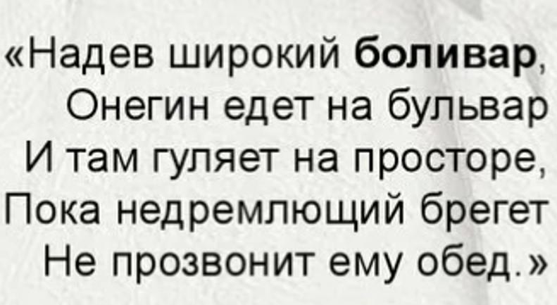 Но гораздо интересней разбирать литературные примеры, например из... Евгения Онегина