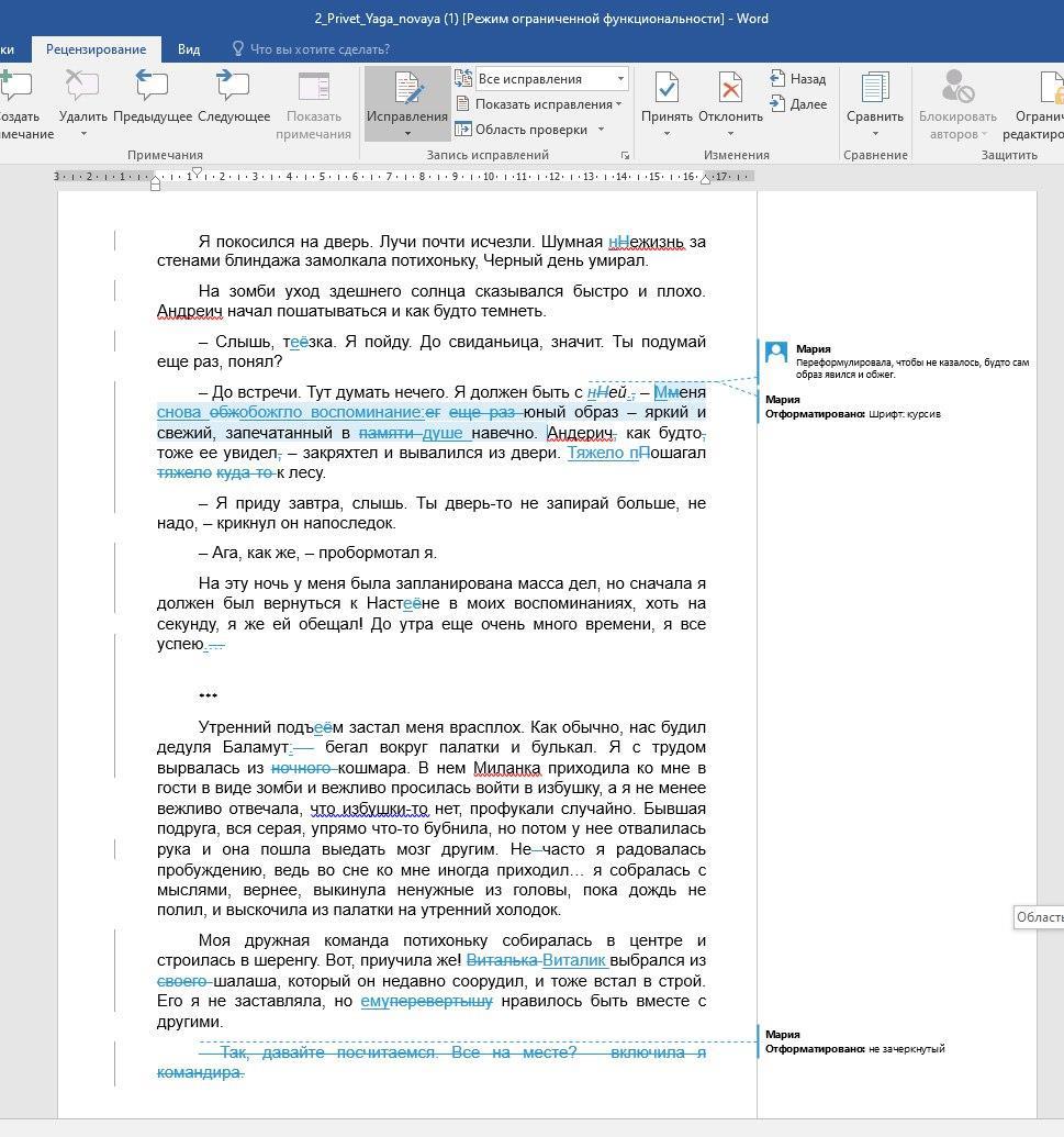 На скрине ниже - один из листов, на котором я принимаю правки. Вот так примерно это выглядит ))) О сроках пока боюсь загадывать.
