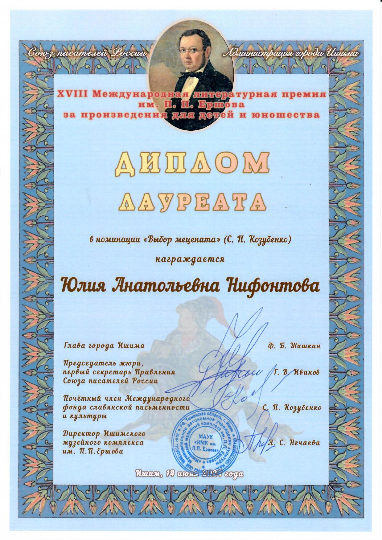 Получила XVIII Международную премию им. П. Ершова за произведение для детей и юношества (г. Ишим Тюменская область);
