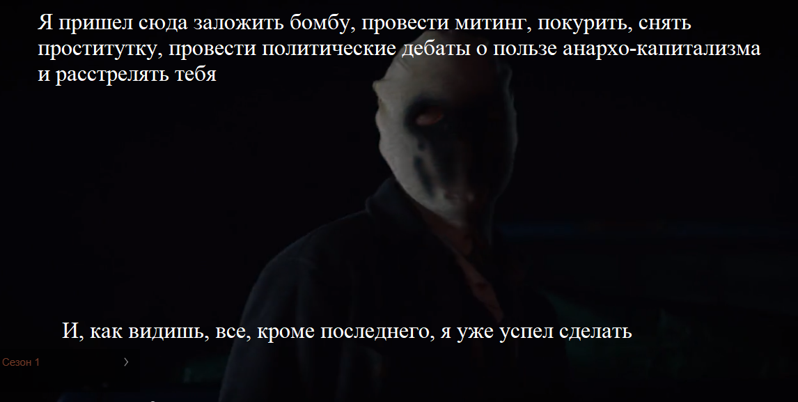 К слову, меня еще поразило, как проводили допрос одного подозреваемого. Сначала к нему вломились в дом, избили и закинули в багажник ( уже достаточно ). Потом его привели и заковали в капсуле для допросов не предоставив адвоката( уже достаточно х2 ). Далее его минут 10 мучали одними и теми же вопросами под постоянно меняющуюся музыку и картинки ( уже достаточно х3 ). А дальше выходит следователь и такой "ну ебать, он нервировался на каверзных вопросах и у него расширились зрачки, когда он увидел пятна Роршаха ( символ повстанцев. И О НЕМ ВСЕ ЗНАЮТ ). Ну это стопроц повстанец". Ахеренная аргументация, две цистерны г*вна автору, это придумавшем. Конечно, все это сдобрено расисткими высказываниями в сторону белых, но опустим это - сие вполне вписывается в характер персонажа.