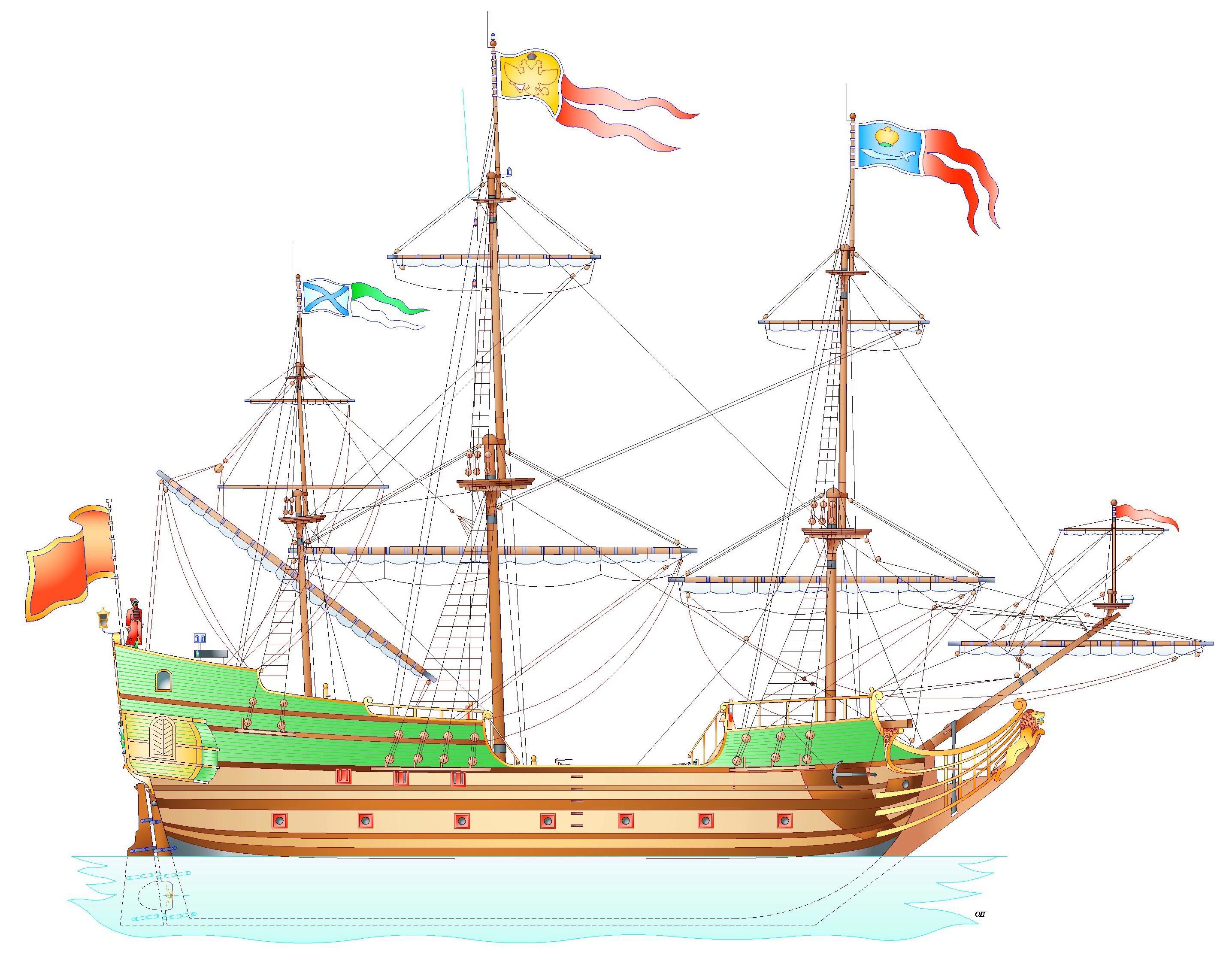 Русь развивалась во времена Тишайшего, пожалуй, даже активнее, чем при Петре. Вот войн вела меньше. Первый театр был открыт именно тогда. Великий князь интересовался, кажется, буквально всем – литературой и разведкой, стихосложением и армейскими реформами. Не известно наверняка, кто написал первый флотский устав для вновь построенного «Орла», но известно, что штатное расписание рейтарского полка написал именно Великий князь. Он даже телескоп себе купил. Кстати, об «Орле». Вот реконструкция этого корабля, которая была в своё время разработана нами: