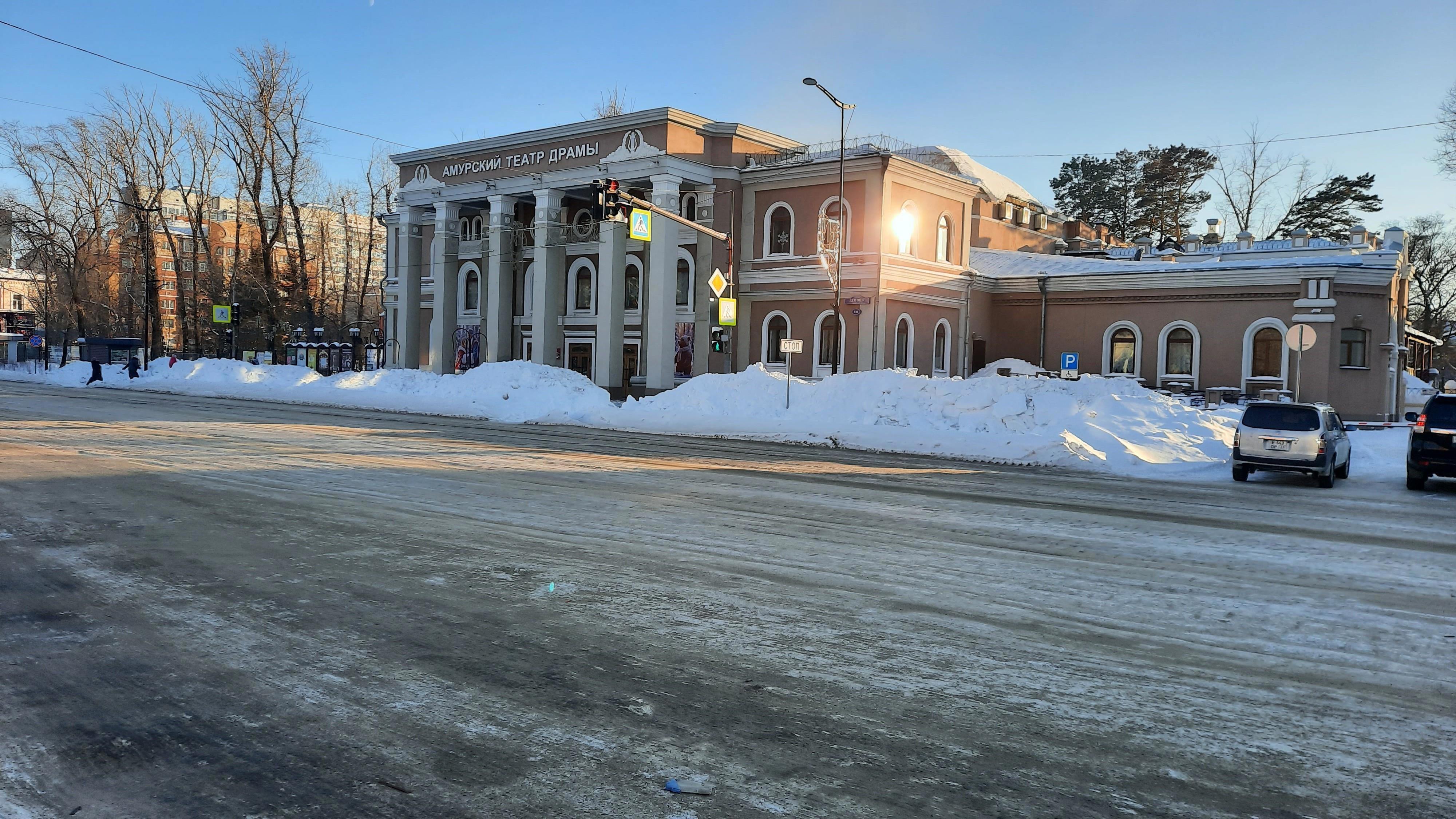 18.12 Удачное фото театра. ул. Ленина - центральная... в ледяной корке. Хотя вроде гребли...
