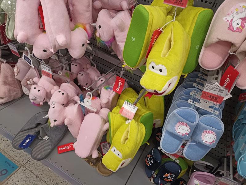 Бывают тапочки-зайчики, а тут в честь года - тапочки-змейки. ну ещё там вроде единорожики рядом.
