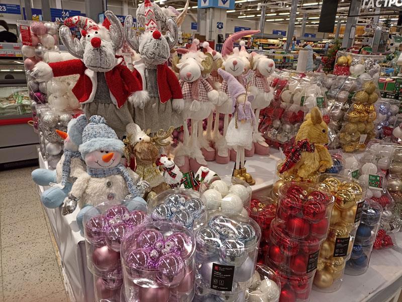 В этом году моё желание побывать в праздничном магазине реализовалось плохо. Сказать что я вообще в пролёте - было бы неправильно, ведь я там всё-таки была, но тогда ещё не все товары выложили. А сегодня выбралась второй раз, и уже всё то ли раскупили, то ли поубирали. Хотя у нас празднуют ещё и Старый Новый Год с 13 на 14, так что могли бы оставить для тех, кто не успел нормально. Но уже ничего нет, только жалкие остатки от былого великолепия.
