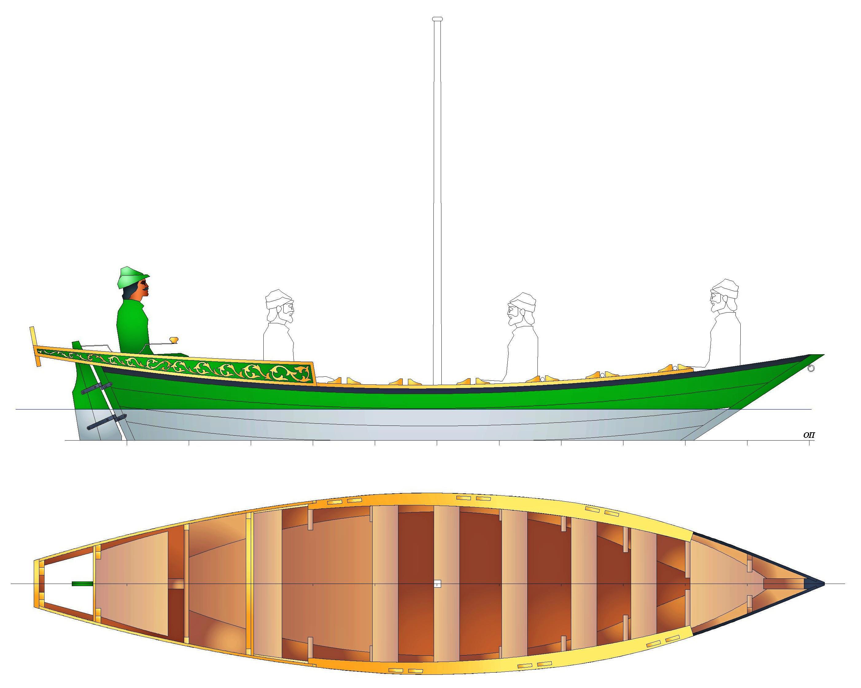 Формально его назвали «лодьей», но фактически форма корпуса русской традиции не соответствует. Это именно западная традиция того периода – форма капли по ватерлинии видна сразу. У такой формы тоже есть свои достоинства. Например, материал для строительства расходуется более экономно. Кочи, карбасы, соймы и прочие суда местной традиции в конце концов строить всё же не перестали ни здесь, ни в других местах страны.