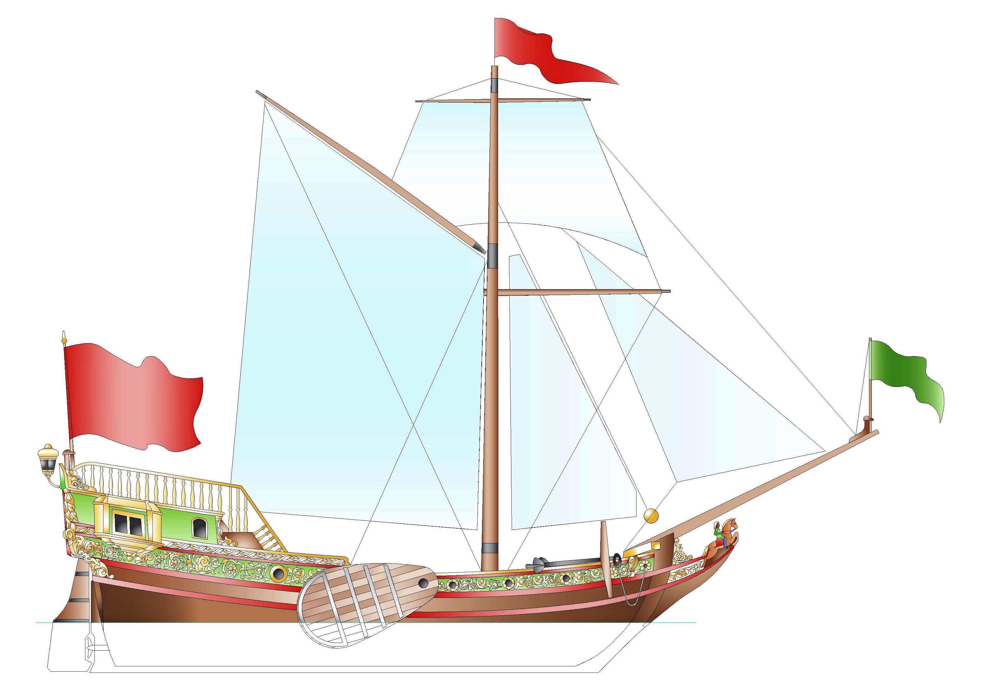 Особенно любопытно в плане противоречивости самой фигуры Петра 1 выглядят два принадлежащий ему маленьких судна. В своё время Император некоторое время прожил в Астрахани. Как водится провёл здесь некоторые новации. В частности повелел чистить городские протоки, построил Адмиралтейство, велел завести «Птичий двор» – получилось что-то среднее между зоопарком и питомником. Повелел немного выше по Волге высадить дубовую рощу, пояснив, что дерево доброе для флота России весьма не лишним будет. Рощу действительно посадили, и наперекор природе вырастили. Её уничтожили уже в советское время, когда нашим реставраторам понадобилось дерево для того, чтобы восстановить паркет в царских дворцах в Питере. Но без воды Императору было как-то скучно, да и перемещаться в наших краях легче всего по воде, поэтому для его нужд было изготовлено два малых судна. Их долго берегли и утрачены они были уже в 20 веке. Одно прозывалось «Плезир-яхтой» и было типичным малым европейским судном. Вот наша реконструкция: