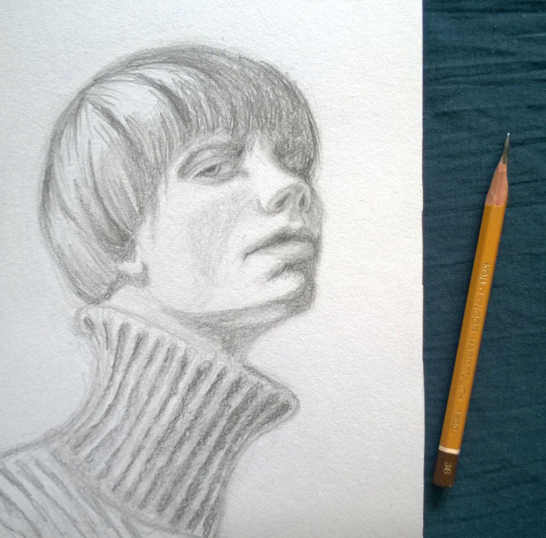 Докупив карандашей (от 3H до 8В), я училась штриховке, выполняя упражнения с канала Art-Shima. Прошла все уроки на канале Alphonso Dunn (замечательный канал, там есть и каранадш, и линер, и акварель, и  штриховка, и лессировка, и перспективные построения). Потом я увидела,  как рисует Proko и попыталась перенять некоторые его приемы - рисование свето-теневыми  блоками и заполнение больших участков тени не штриховкой, а боковой  поверхностью грифеля. Одновременно я отрабатывала все то же самое  (построение головы) в цифре.