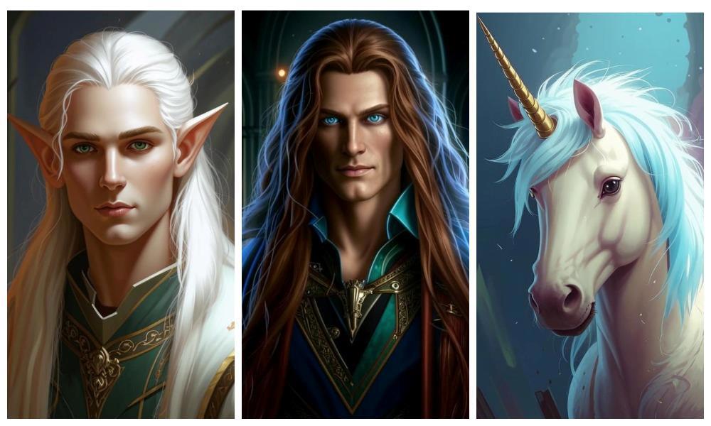 Бонус: единорог И`Нельо в своей единорожьей ипостаси. На эльфийскую версию сил моих уже не хватило, увы! С единорогами у Кандинского явно какие-то особые отношения, принуждающие нейросеть менять лошадиные уши на дополнительные рога, а основной рог сдвигать куда-то на затылок :)